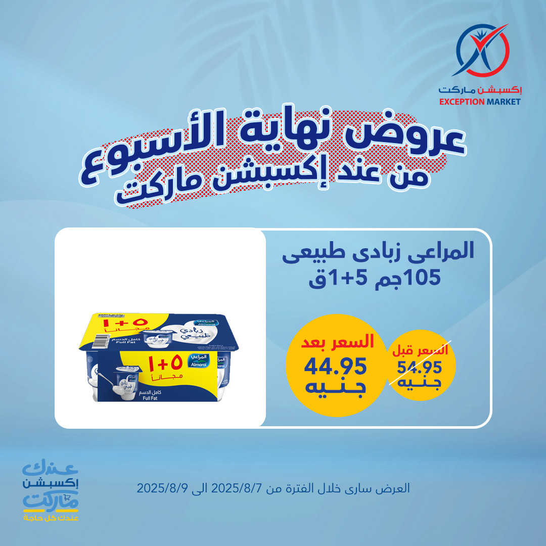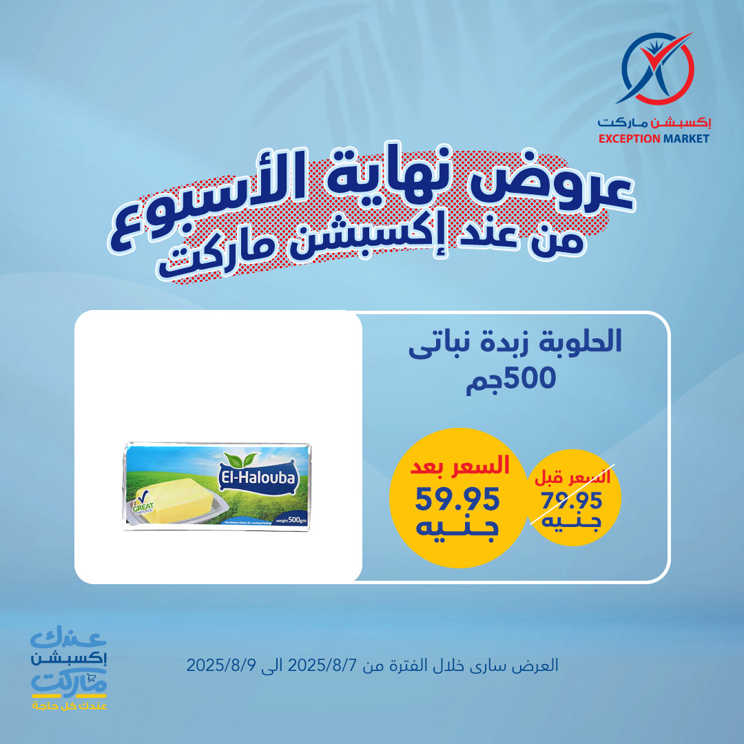 في الأوفر بيعرفك على عروض الويك إند من إكسبشن ماركت الجديدة ابتداء من 7 اغسطس حتى 9 اغسطس