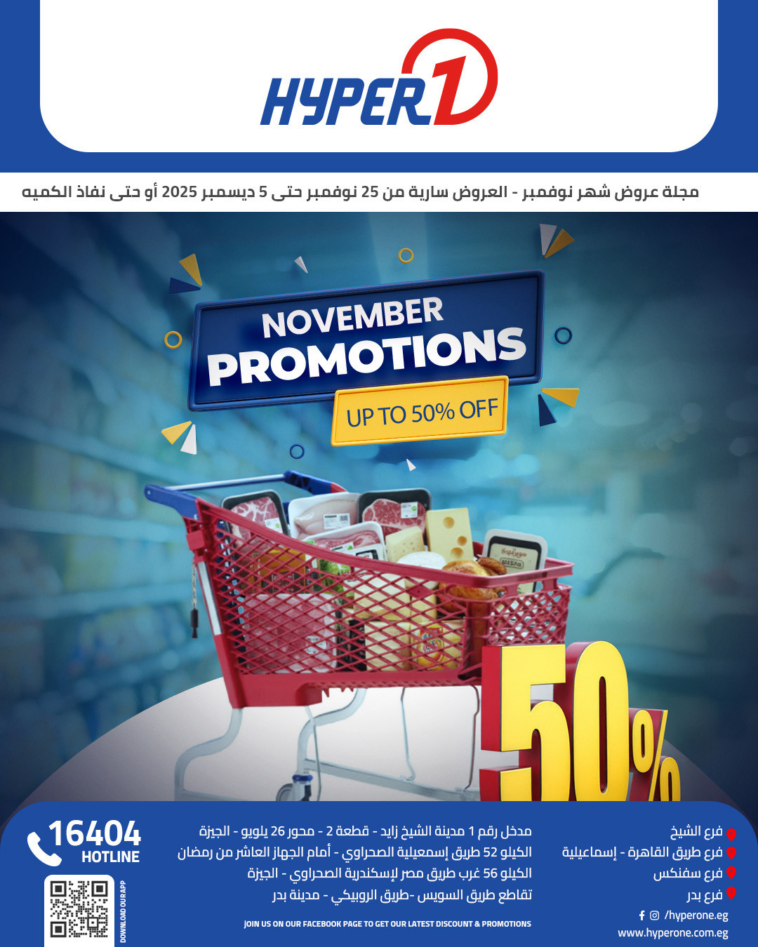 عروض هايبر وان ماركت الجديدة ابتداء من 25 نوفمبر حتى 5 ديسمبر
