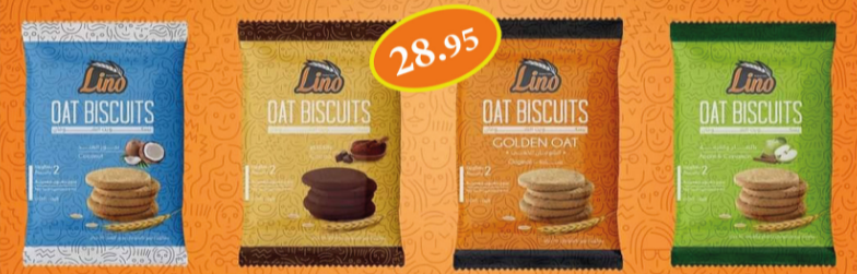 لينو بسكويت شوفان بالتفاح و القرفة \ جوز الهند 12 قطعة