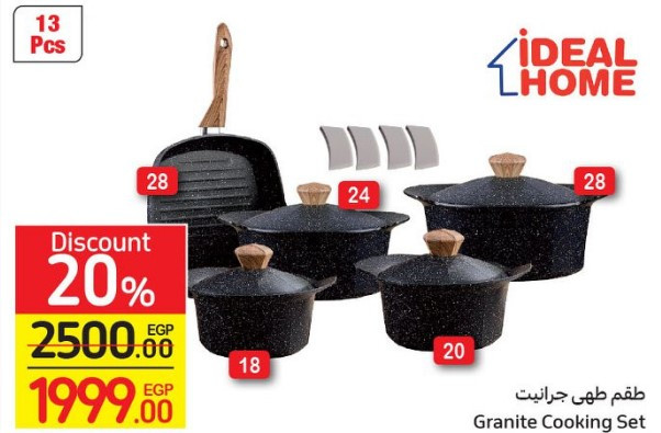 طقم حلل ايديال هوم، 4 حلل مقاس 18،20،24،28 + شواية مقاس 28 + مساكات سيليكون