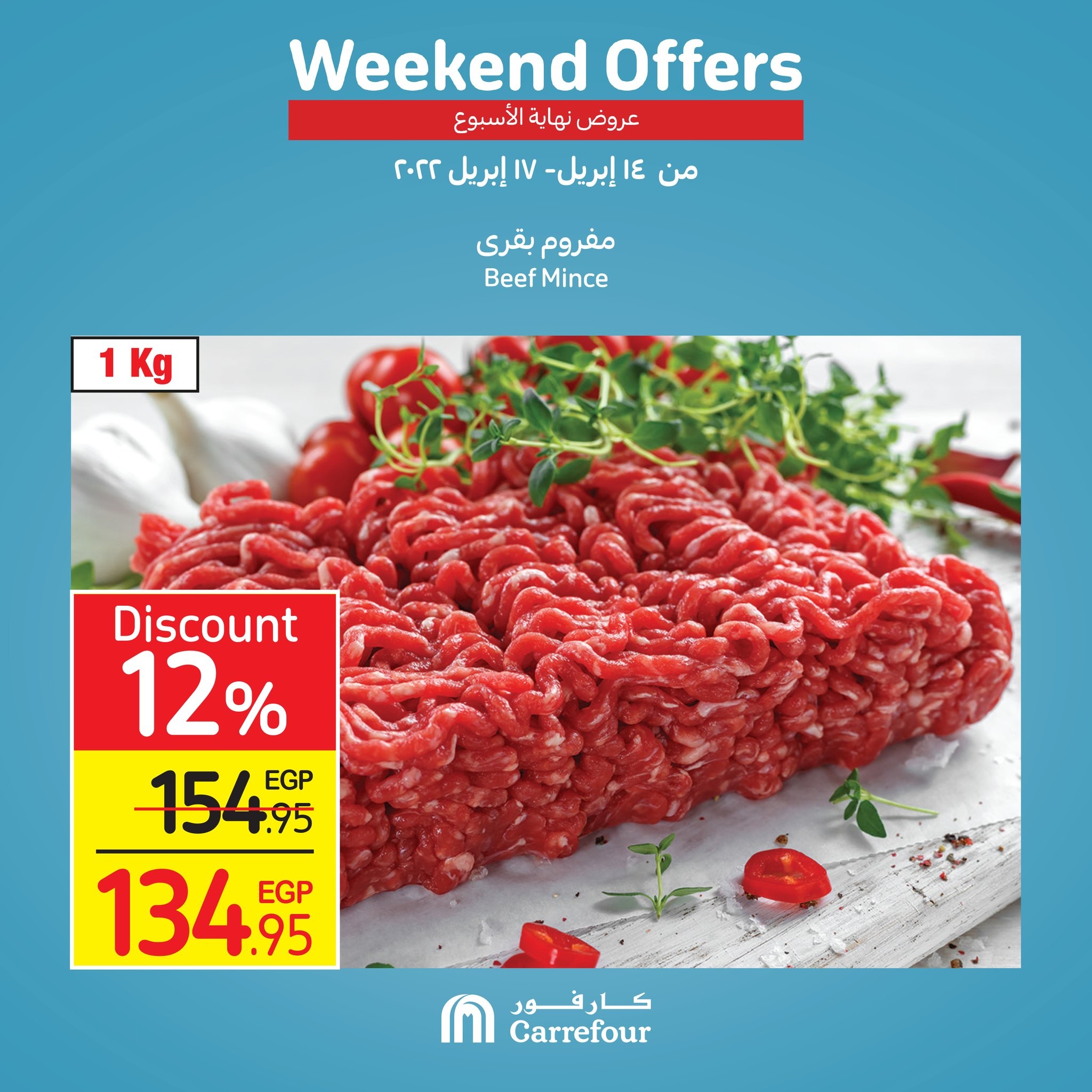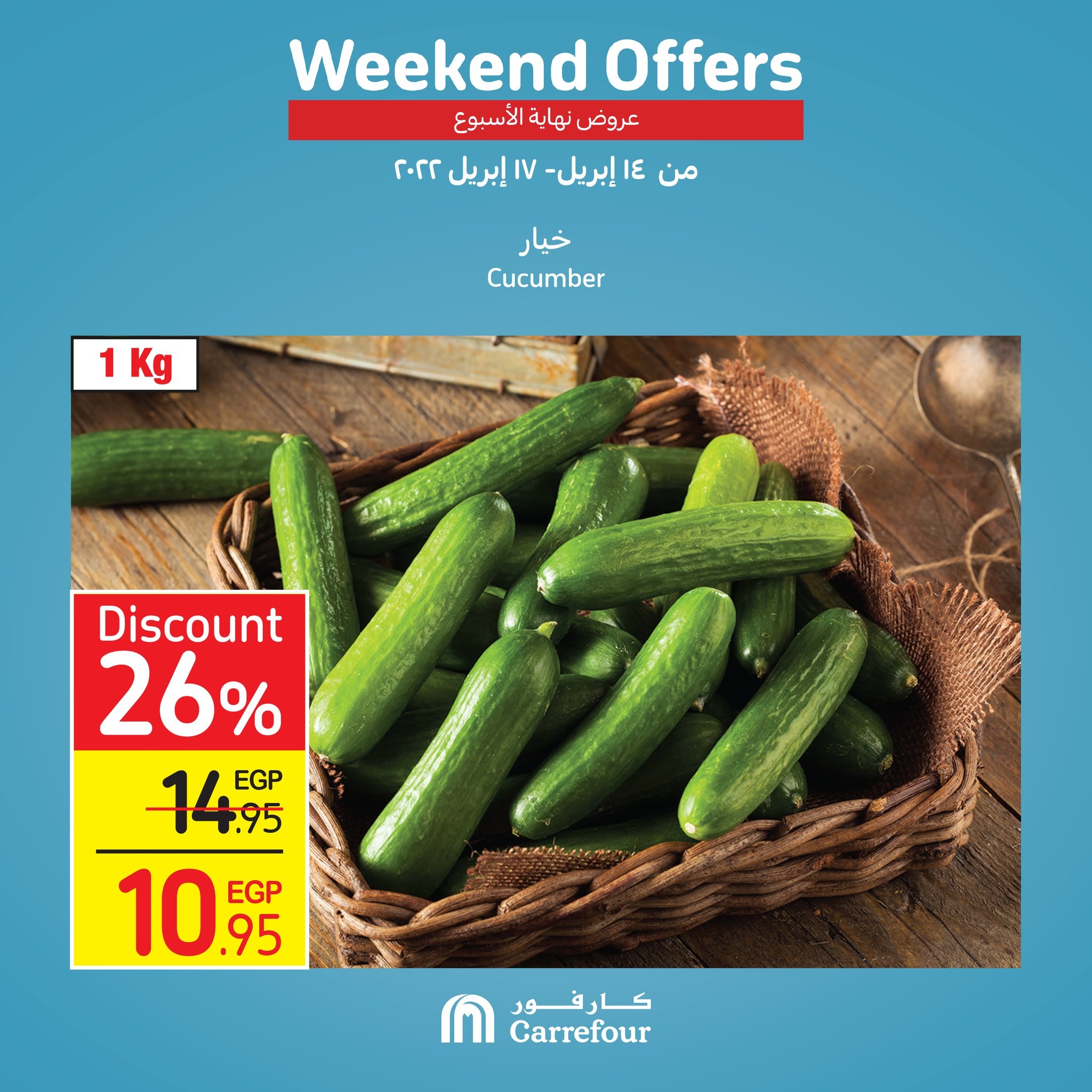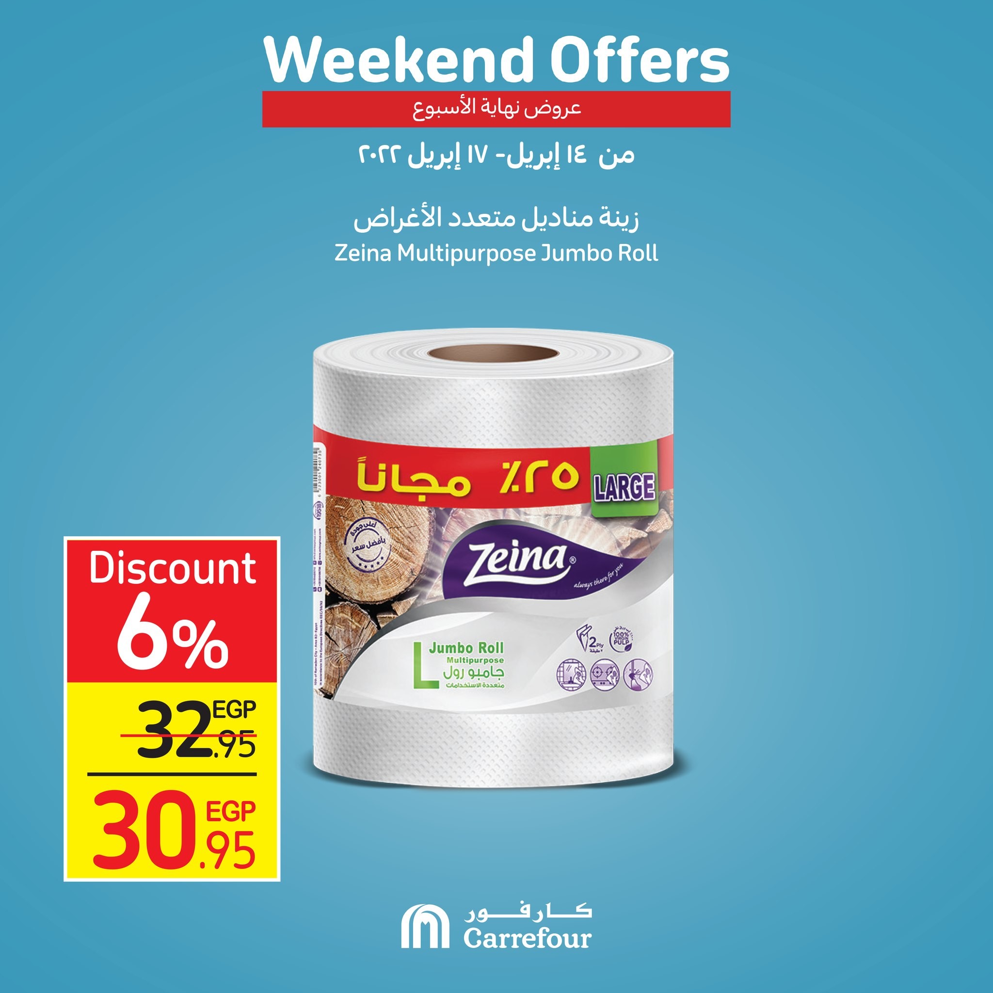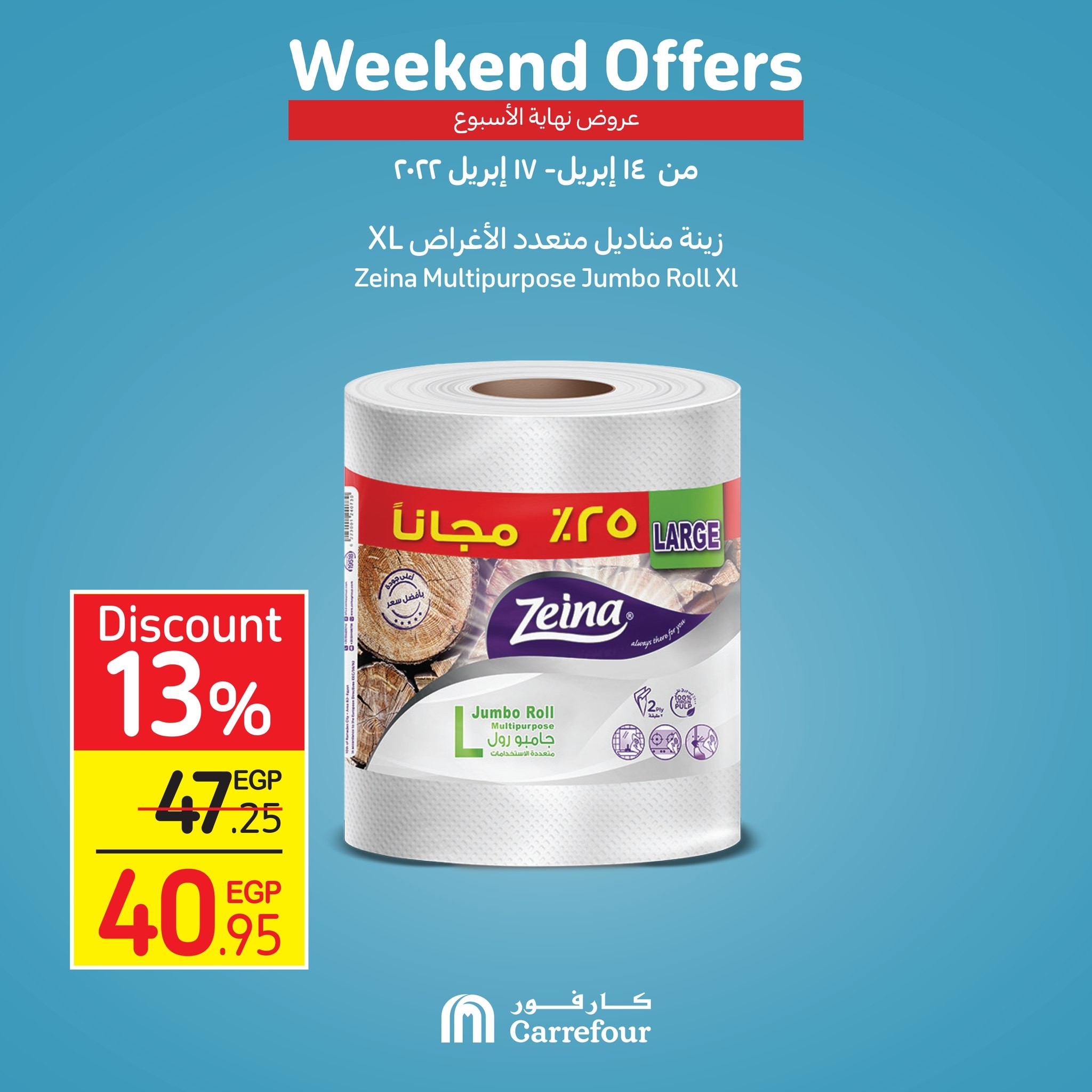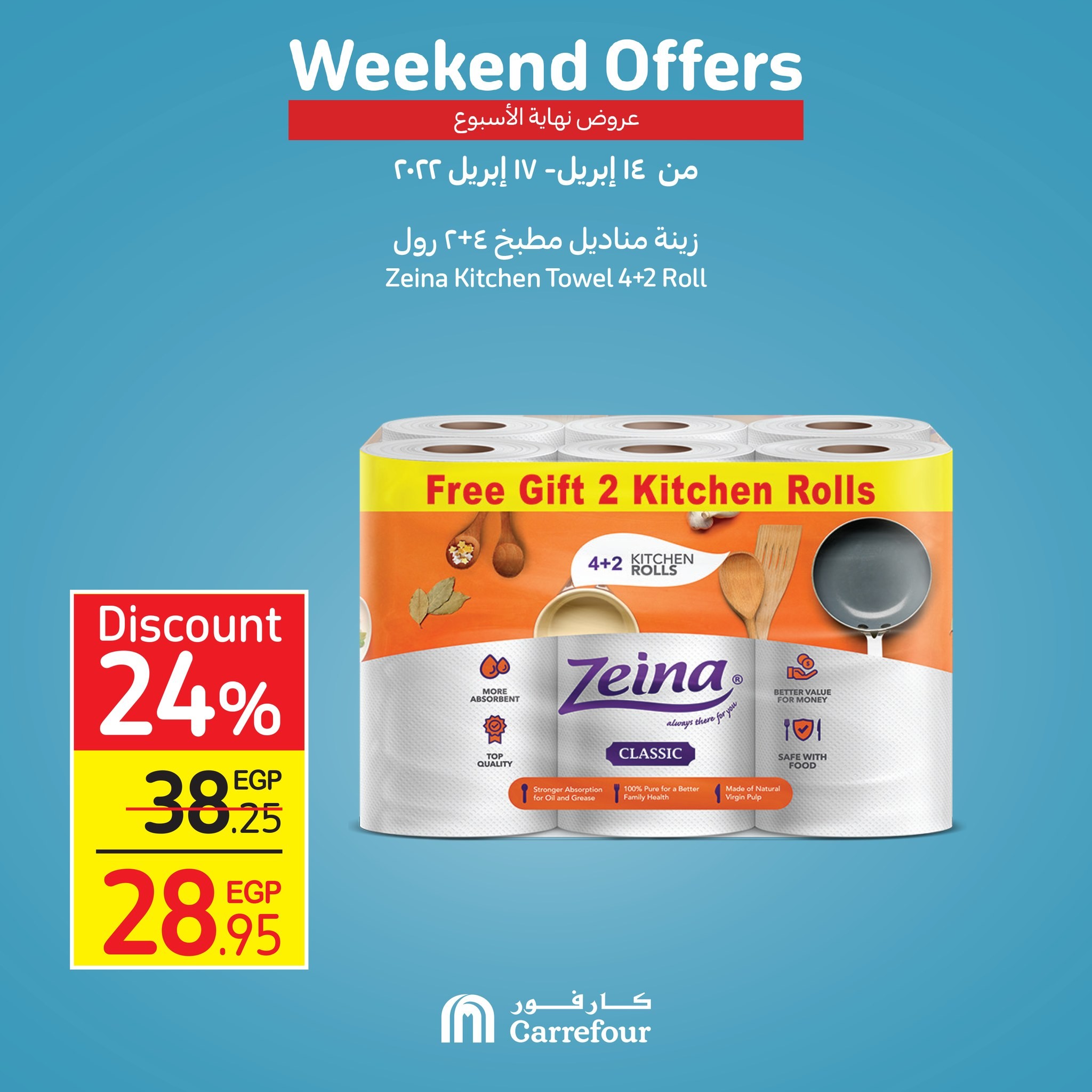 في الاوفر بيعرفك علي عروض الويك اند من كارفور ابتداء من 14 ابريل حتى 17 ابريل