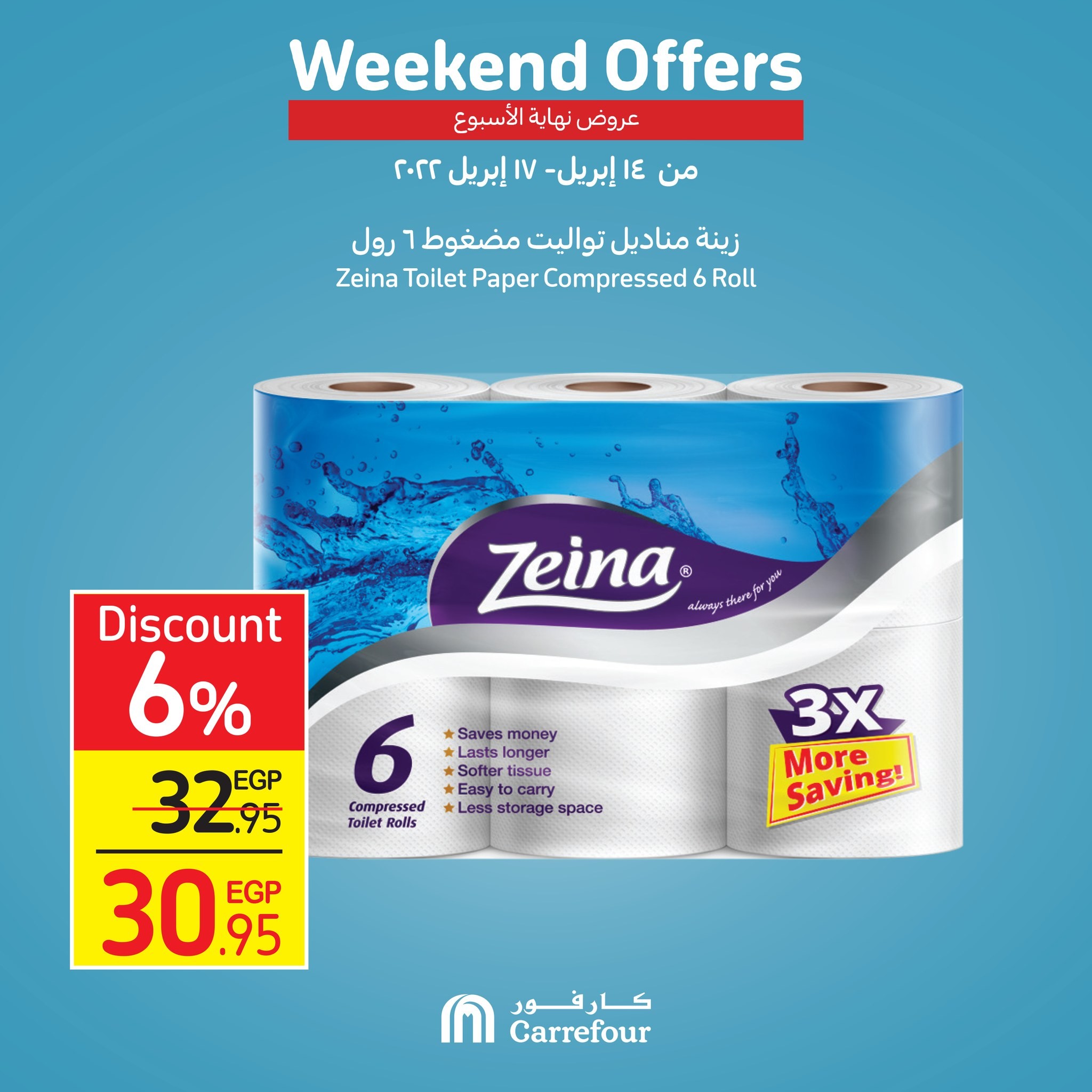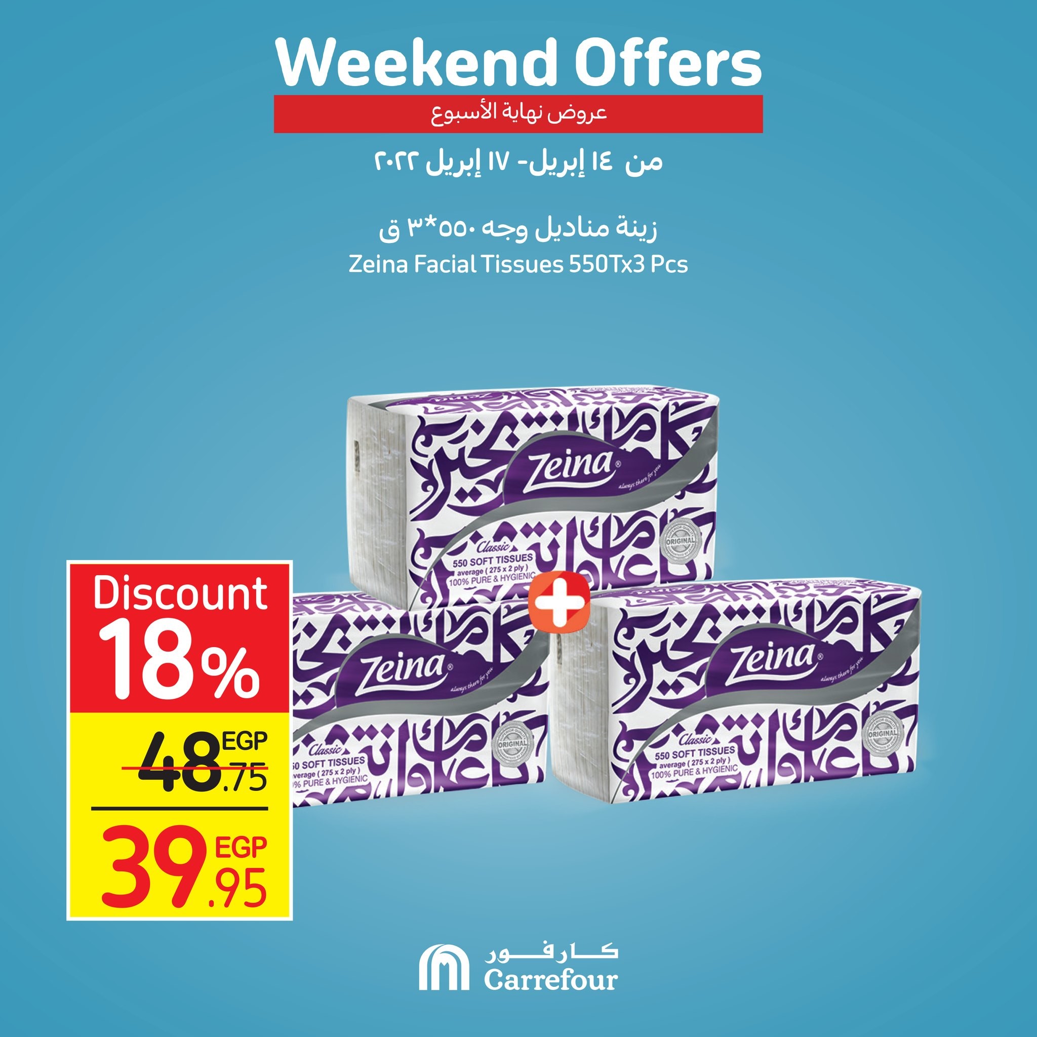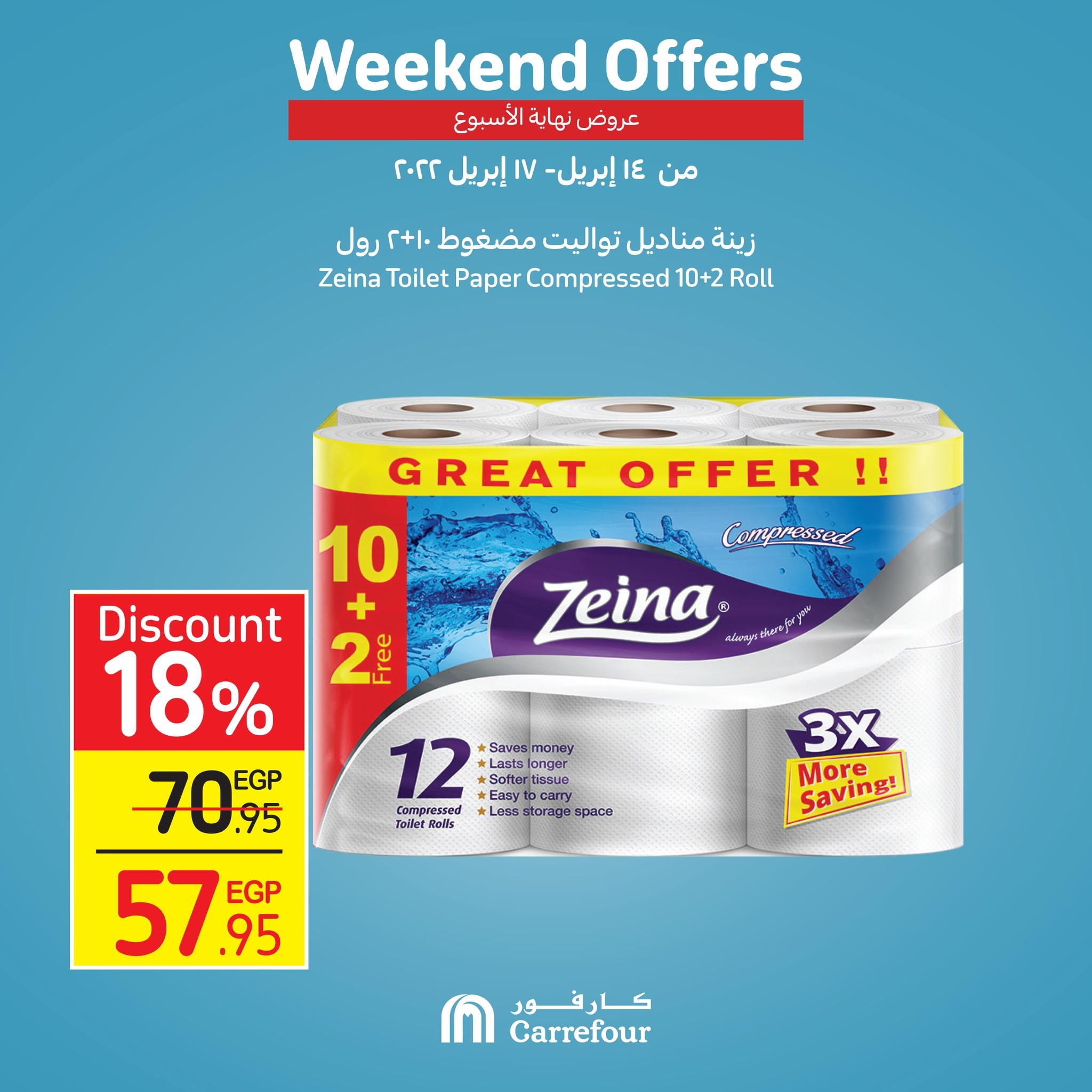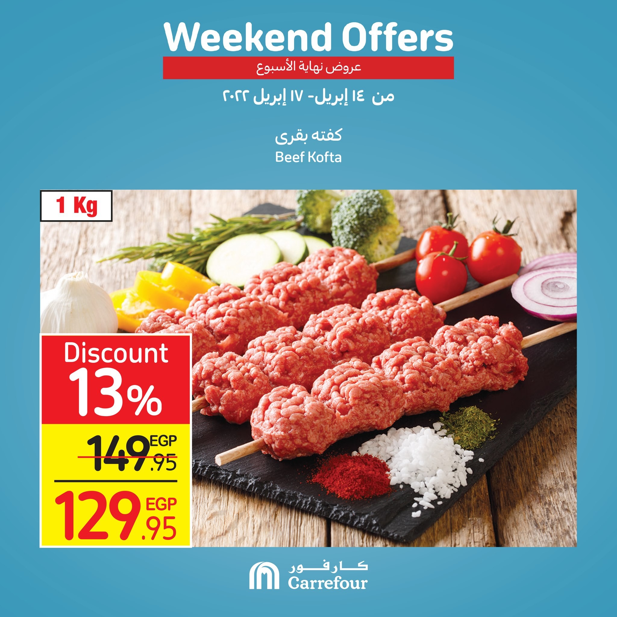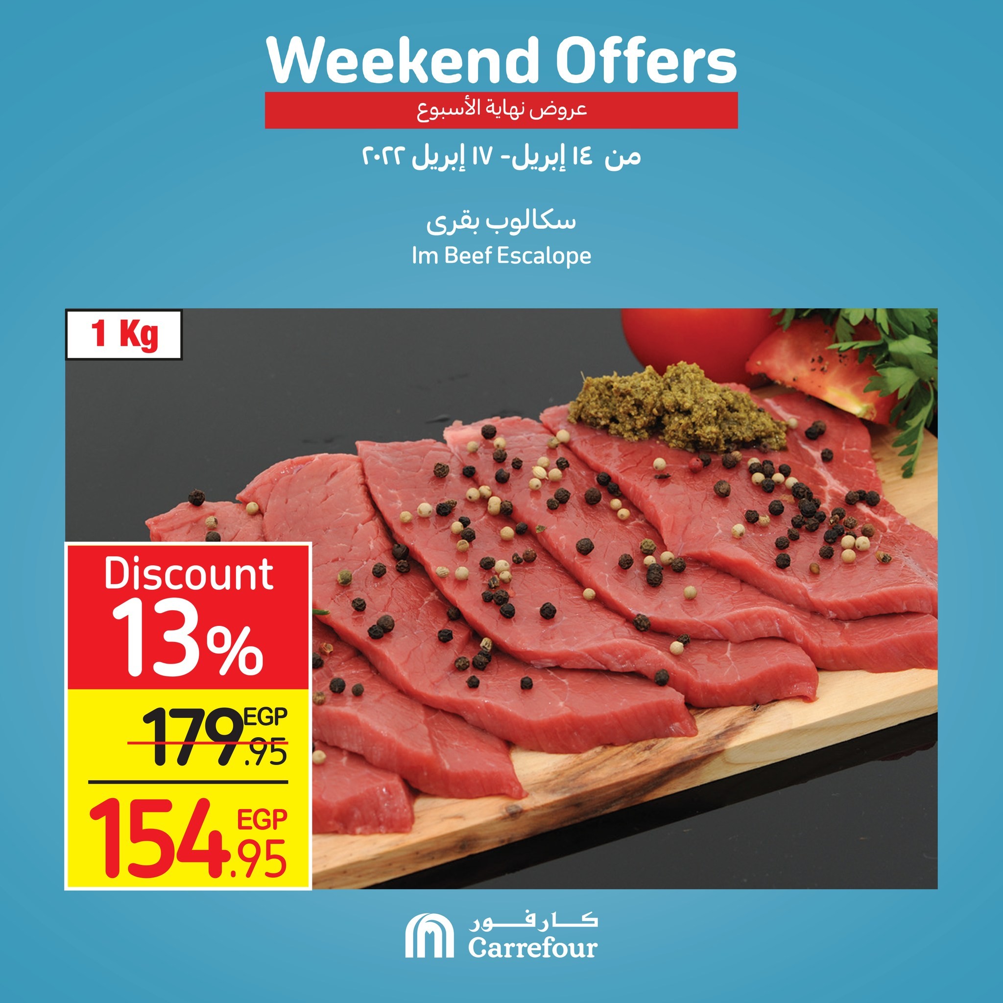 في الاوفر بيعرفك علي عروض الويك اند من كارفور ابتداء من 14 ابريل حتى 17 ابريل