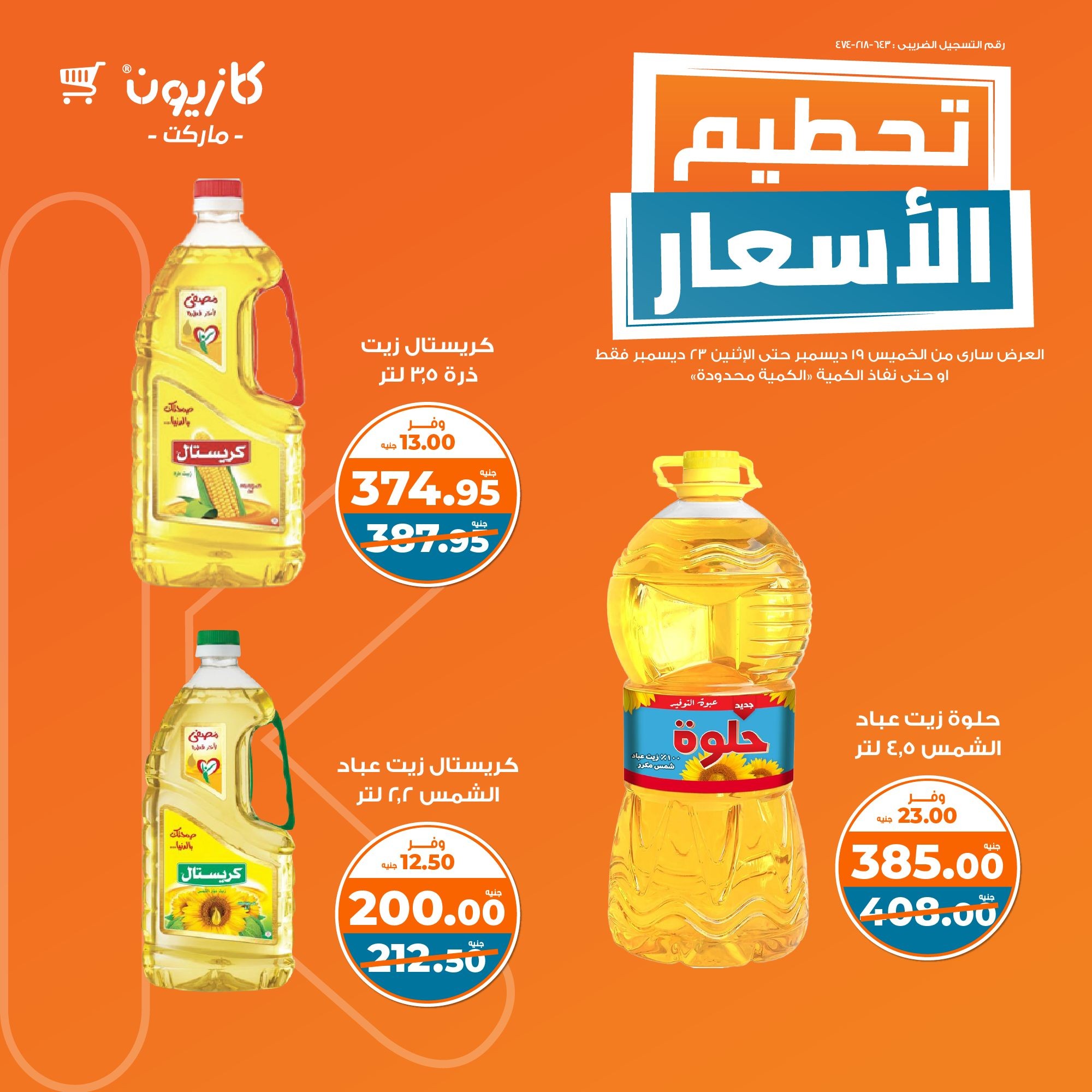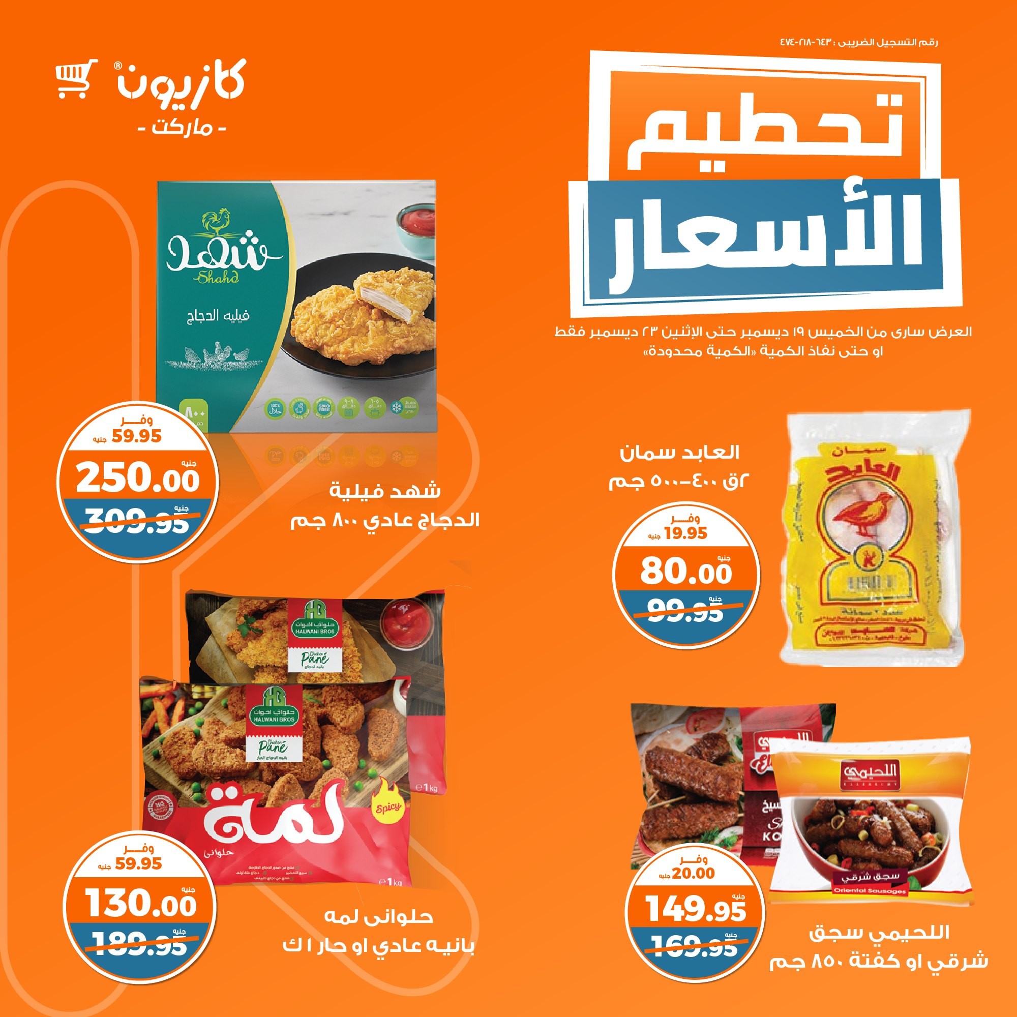 في الأوفر بيعرفك على عرووض الويك إند من كازيون ابتداء من 19 ديسمبر حتى 23 ديسمبر