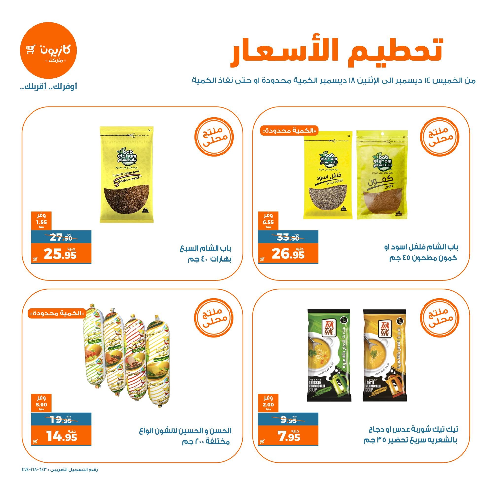 في الأوفر بيعرفك على عروض كازيون ماركت لتحطيم الأسعار الجديدة ابتداء من 14 ديسمبر حتى 18 ديسمبر