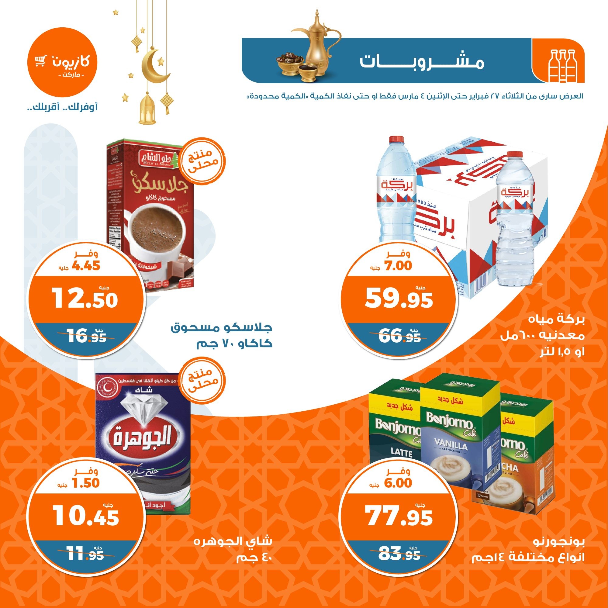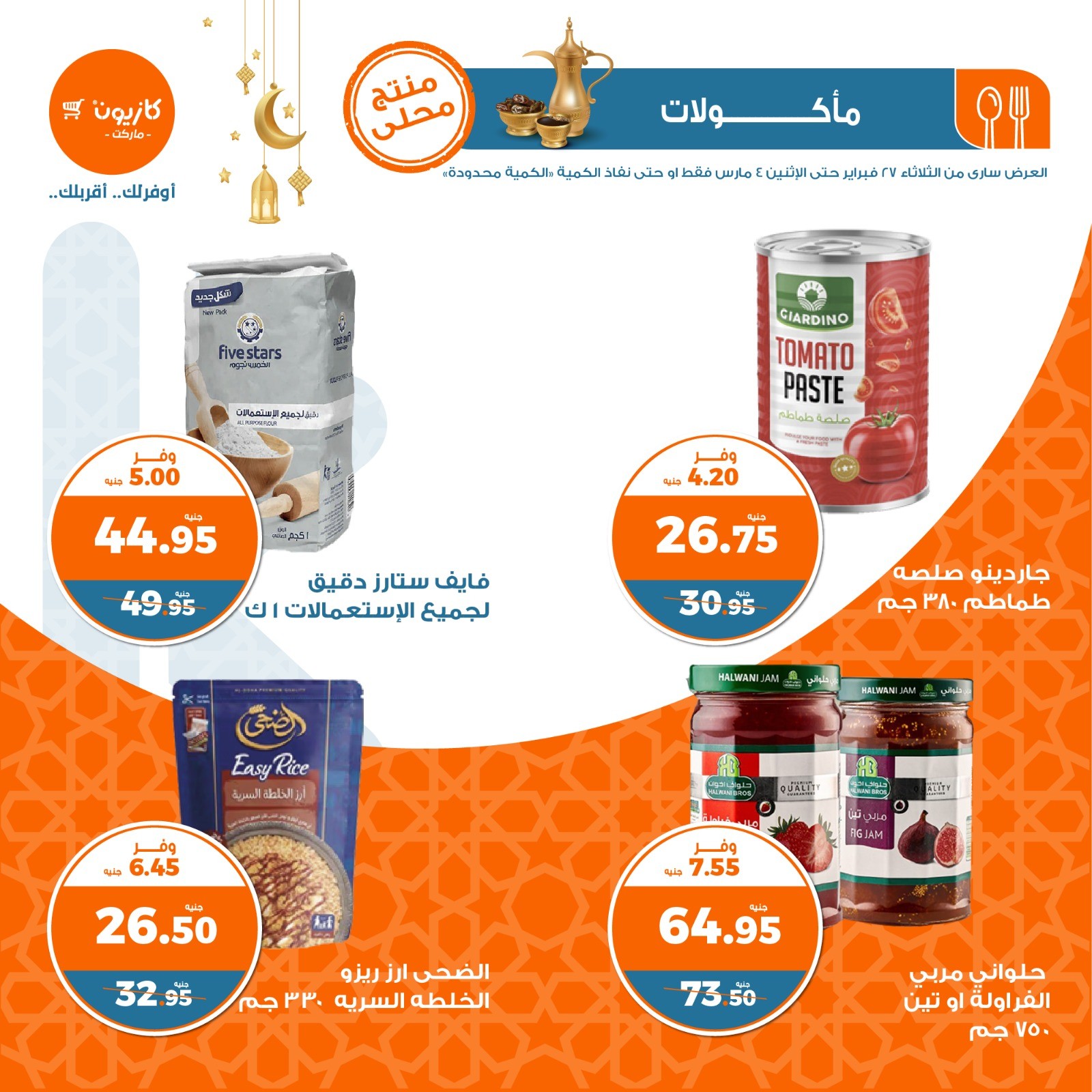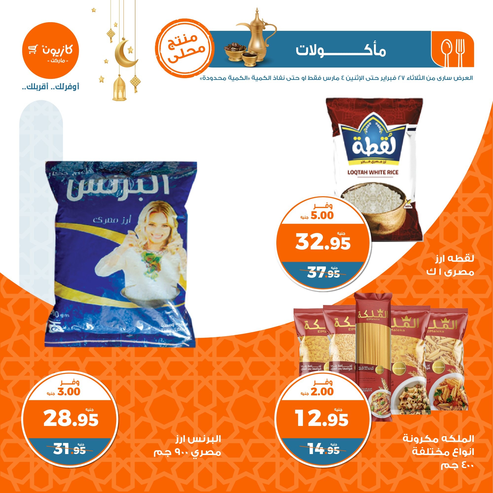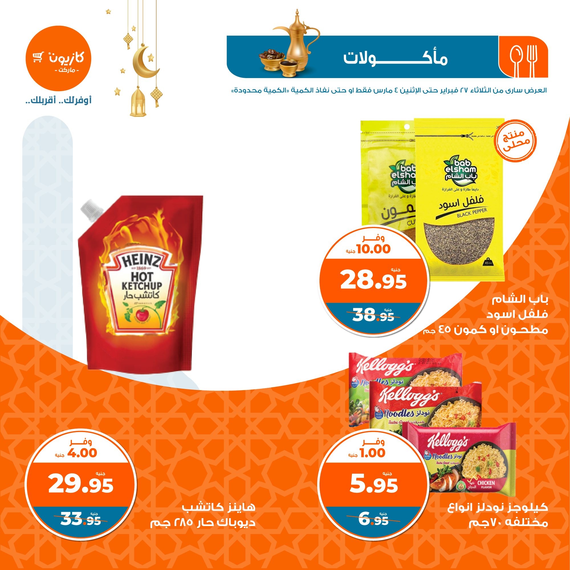 في الأوفر بيعرفك على عروض رمضان الجديدة من كازيون ماركت ابتداء من 27 فبراير حتى 4 مارس