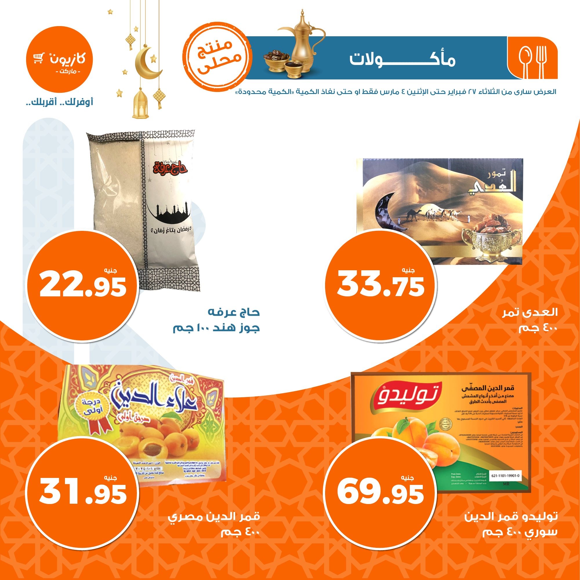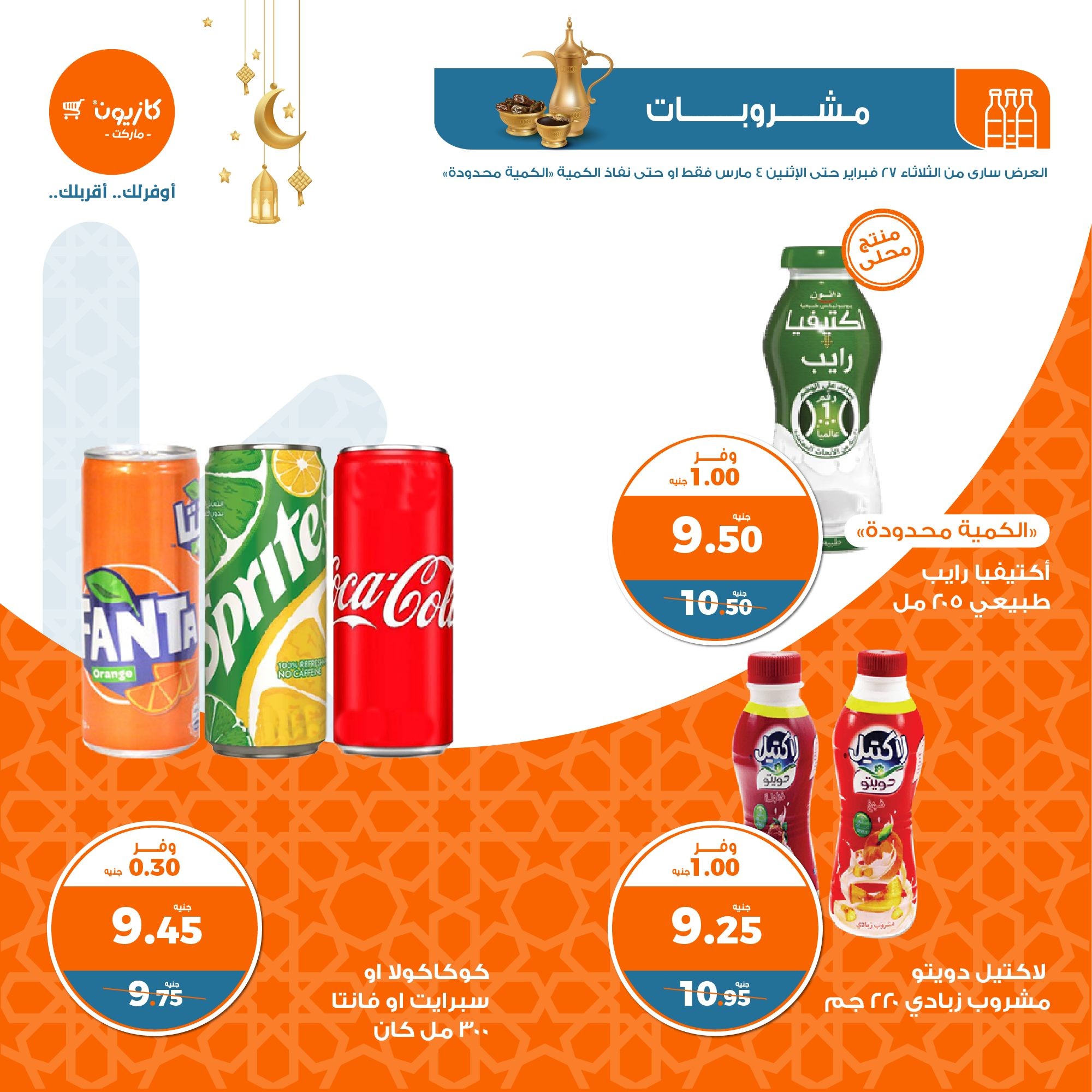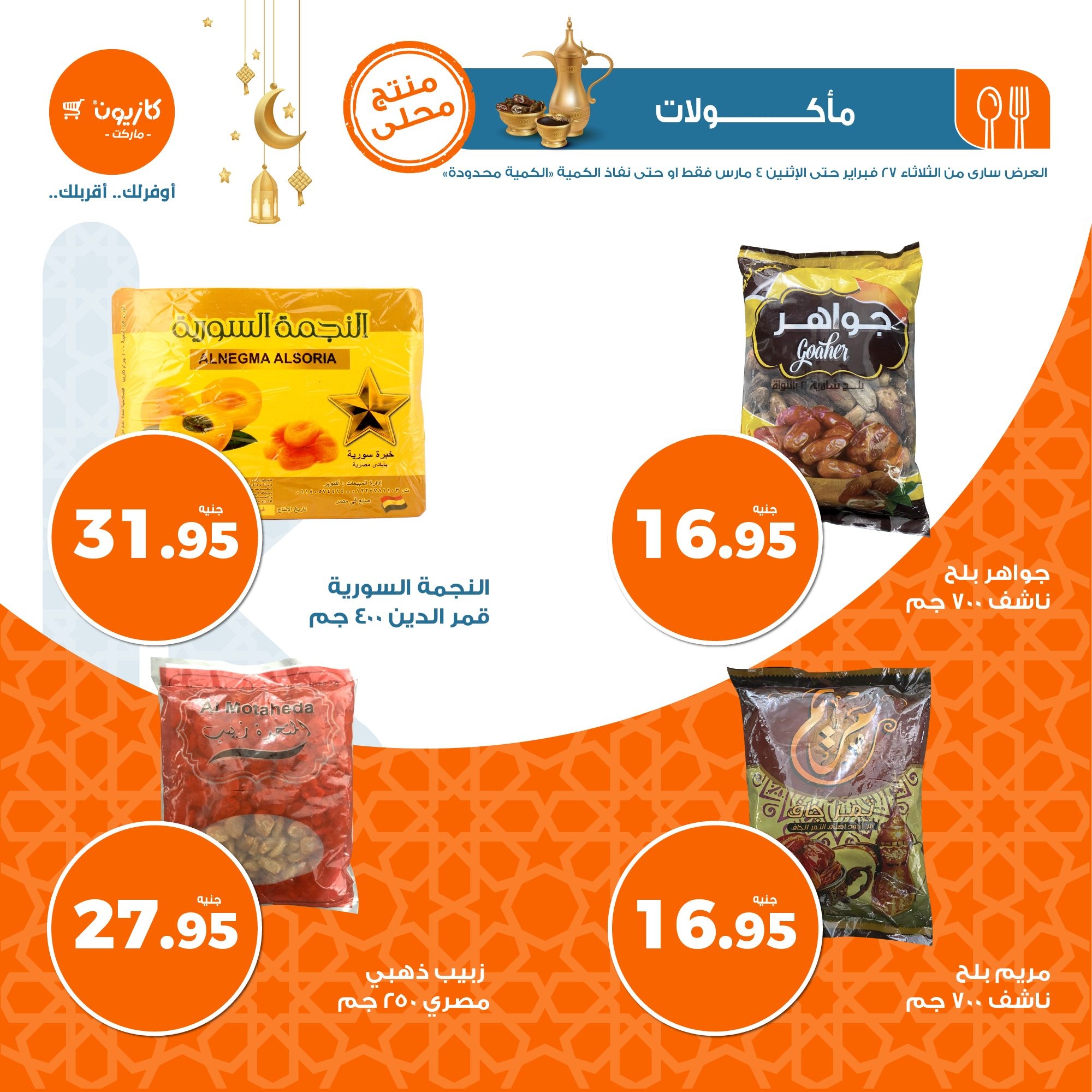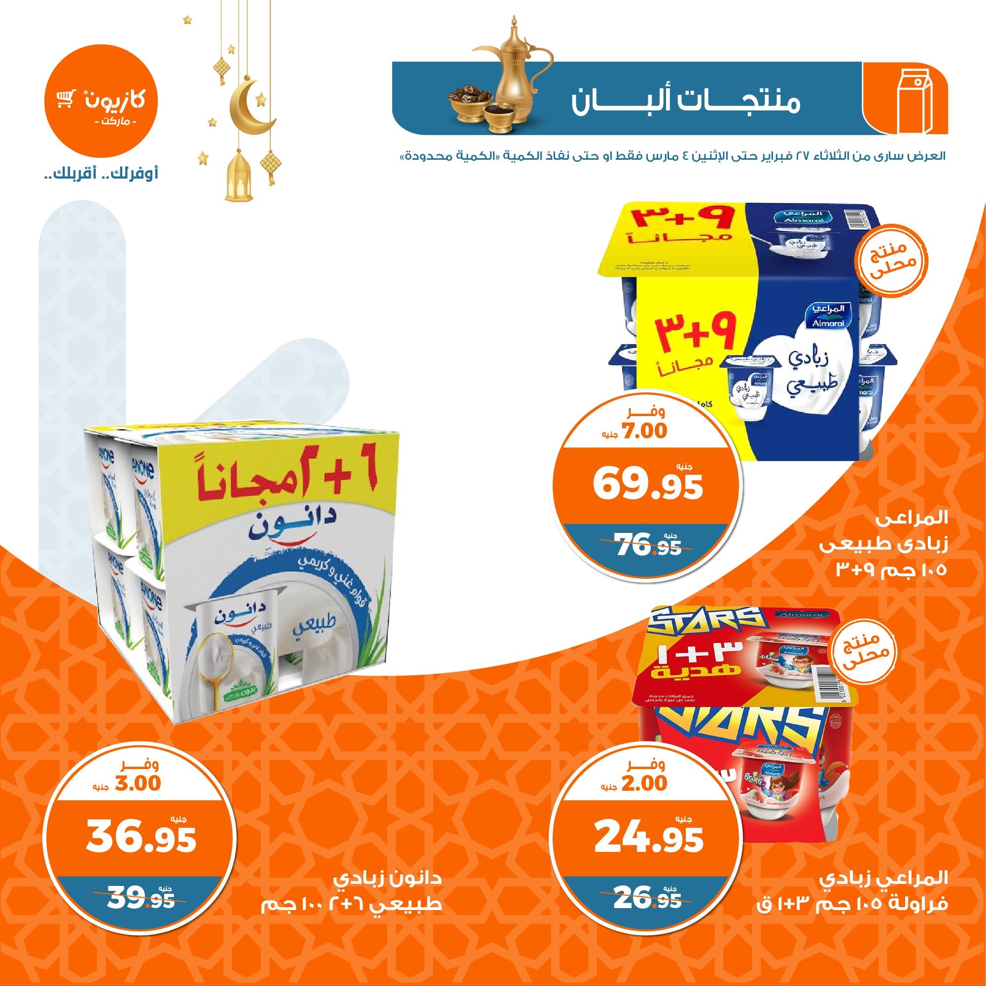 في الأوفر بيعرفك على عروض رمضان الجديدة من كازيون ماركت ابتداء من 27 فبراير حتى 4 مارس