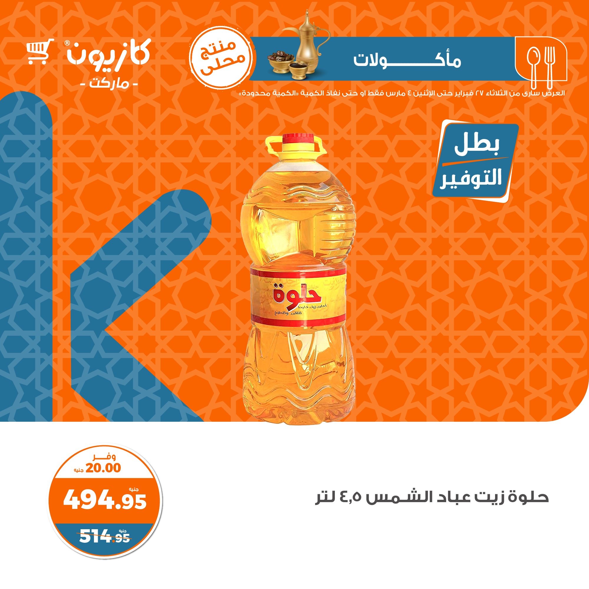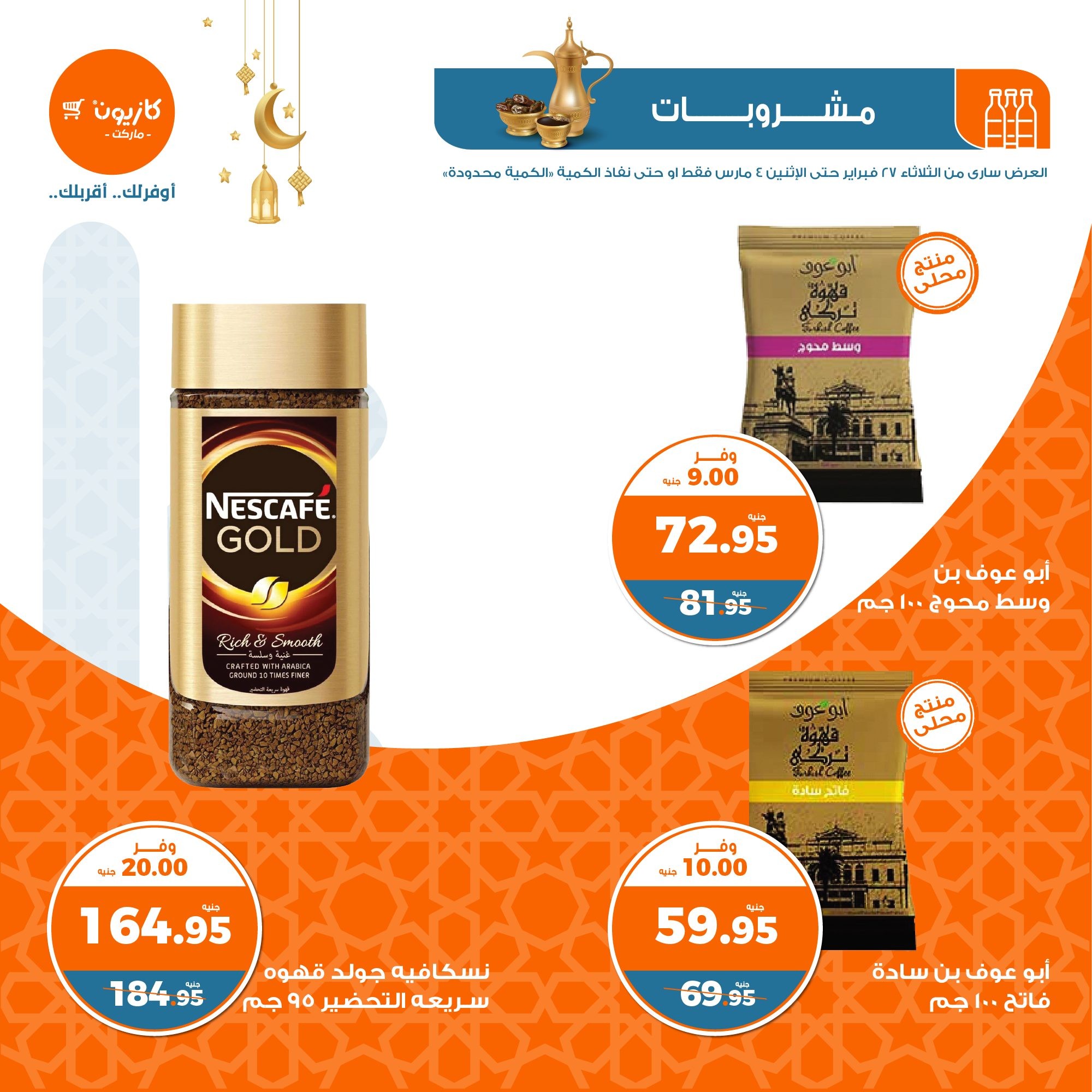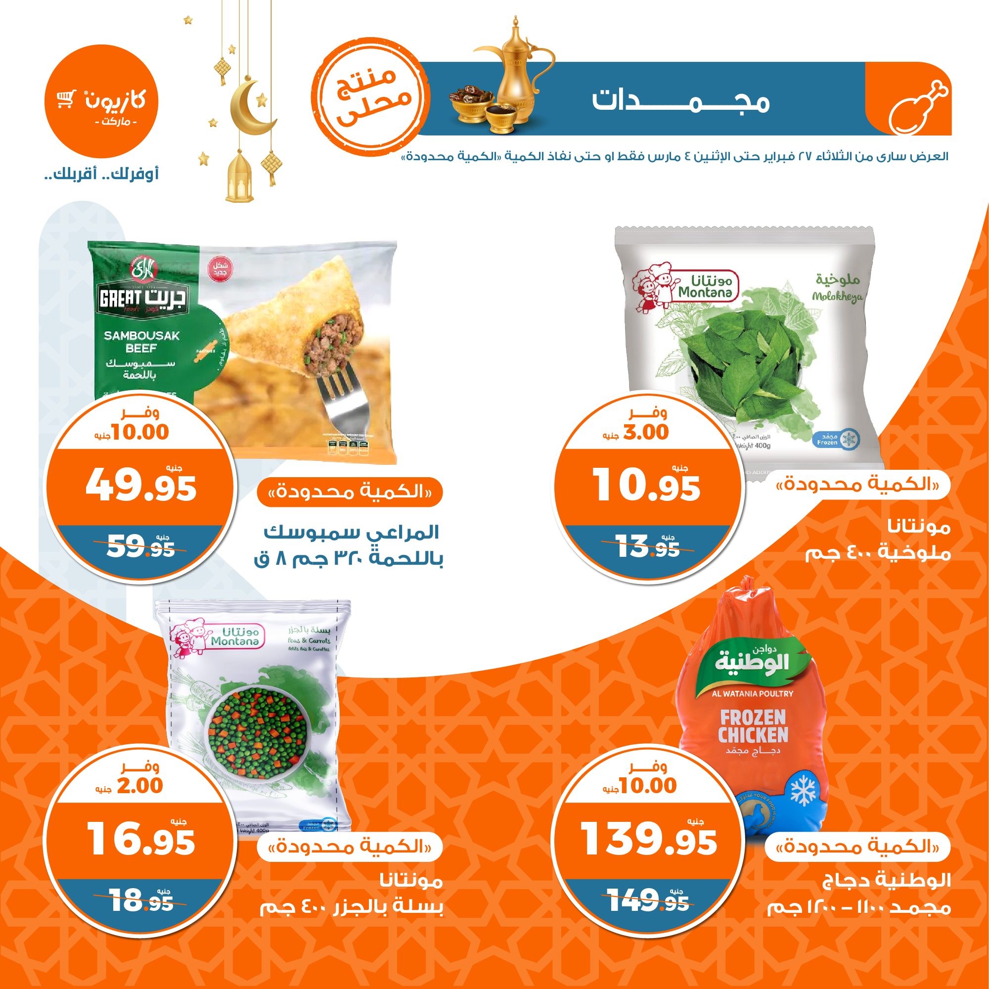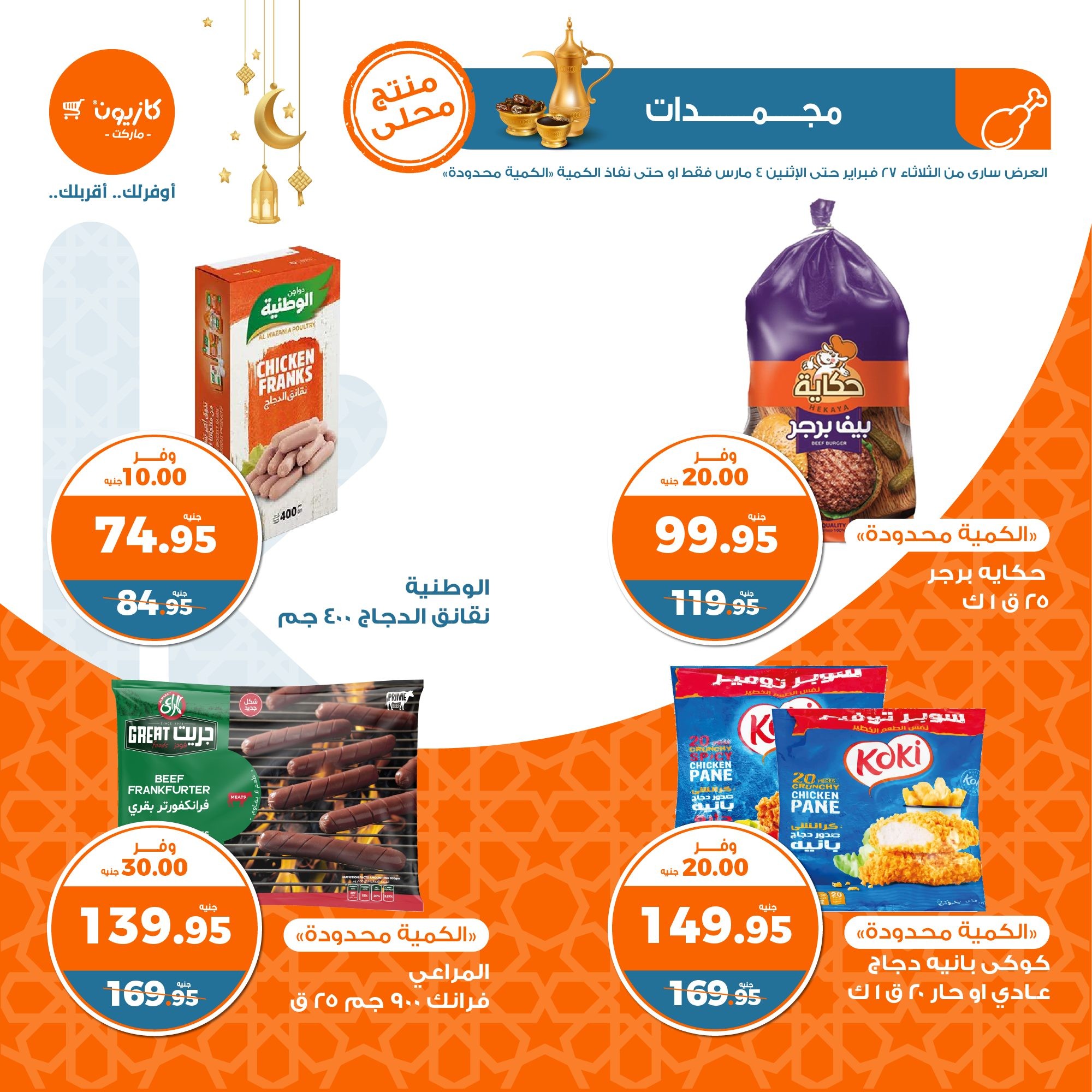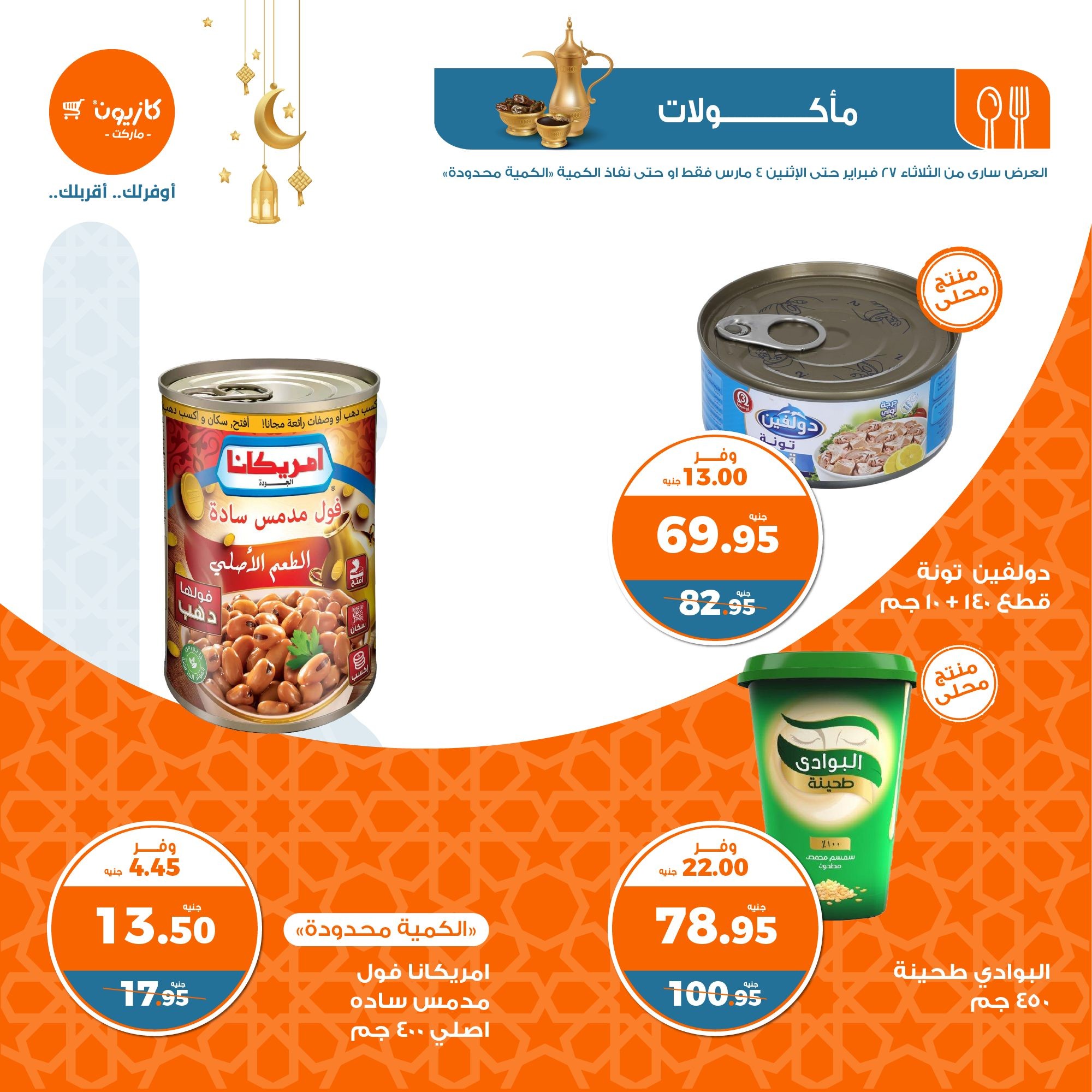 في الأوفر بيعرفك على عروض رمضان الجديدة من كازيون ماركت ابتداء من 27 فبراير حتى 4 مارس