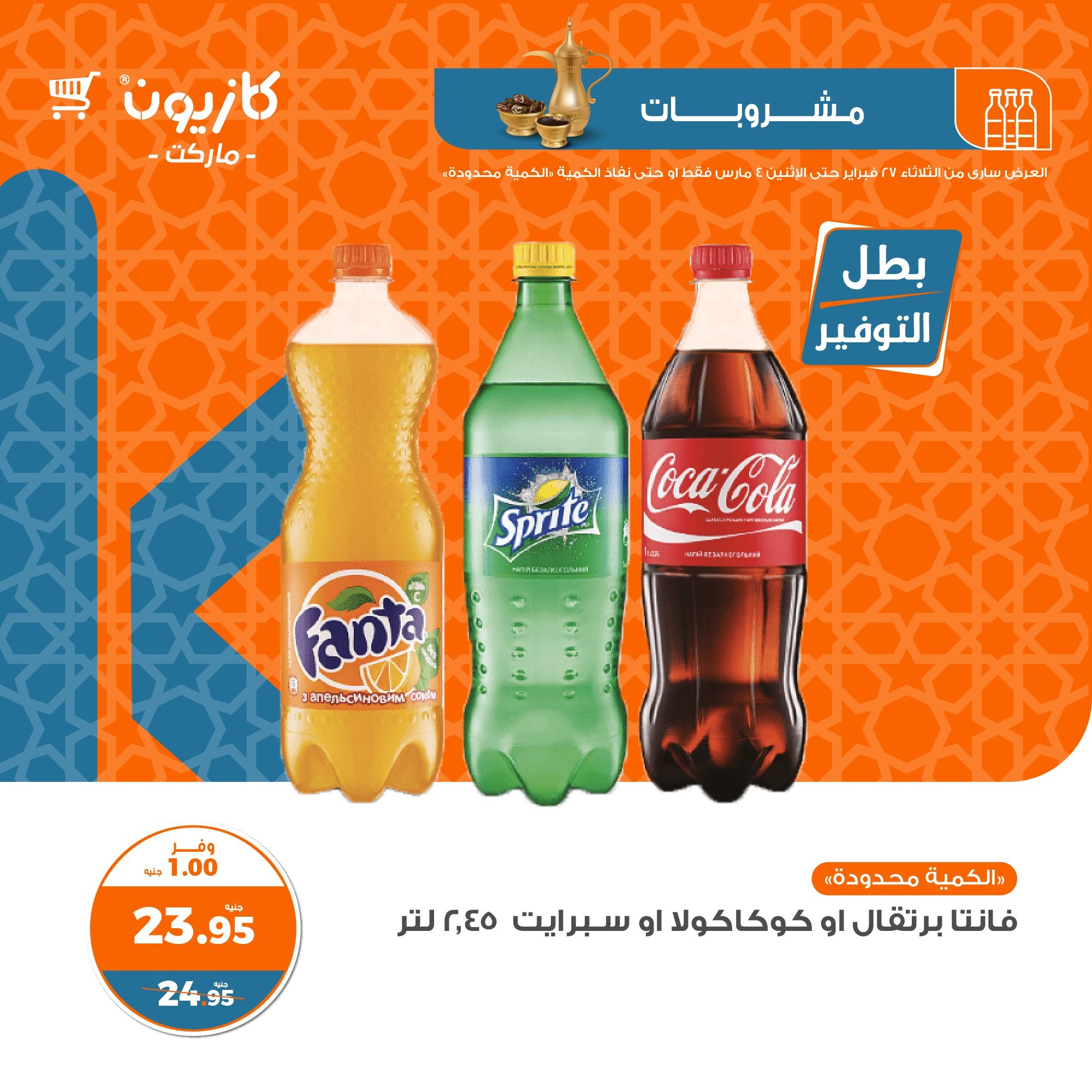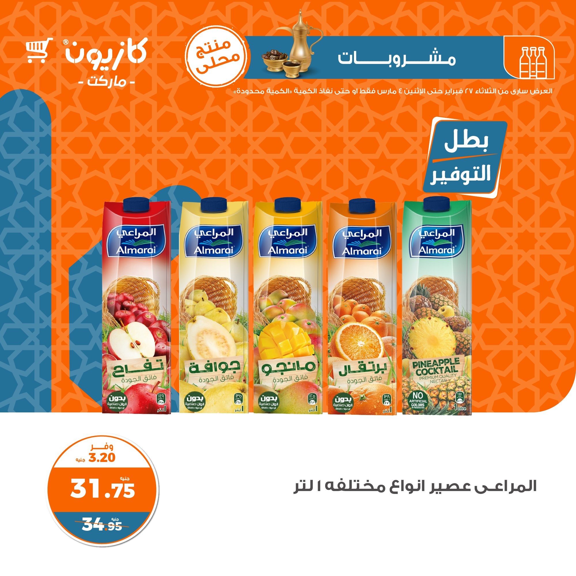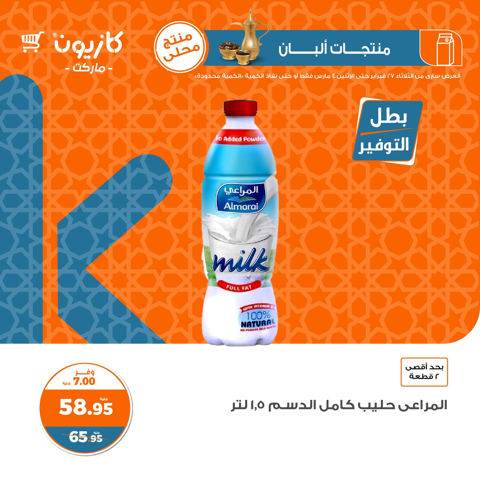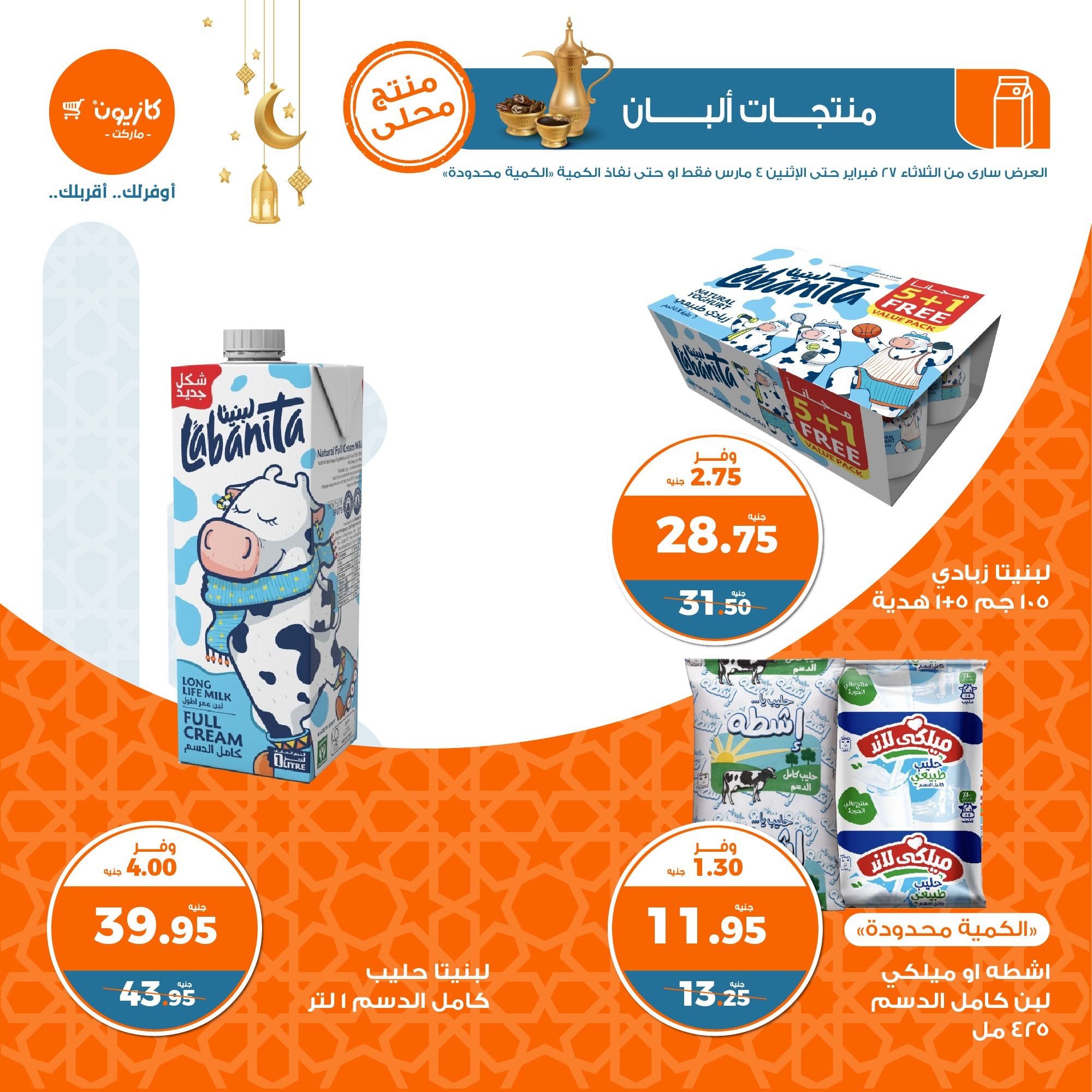 في الأوفر بيعرفك على عروض رمضان الجديدة من كازيون ماركت ابتداء من 27 فبراير حتى 4 مارس
