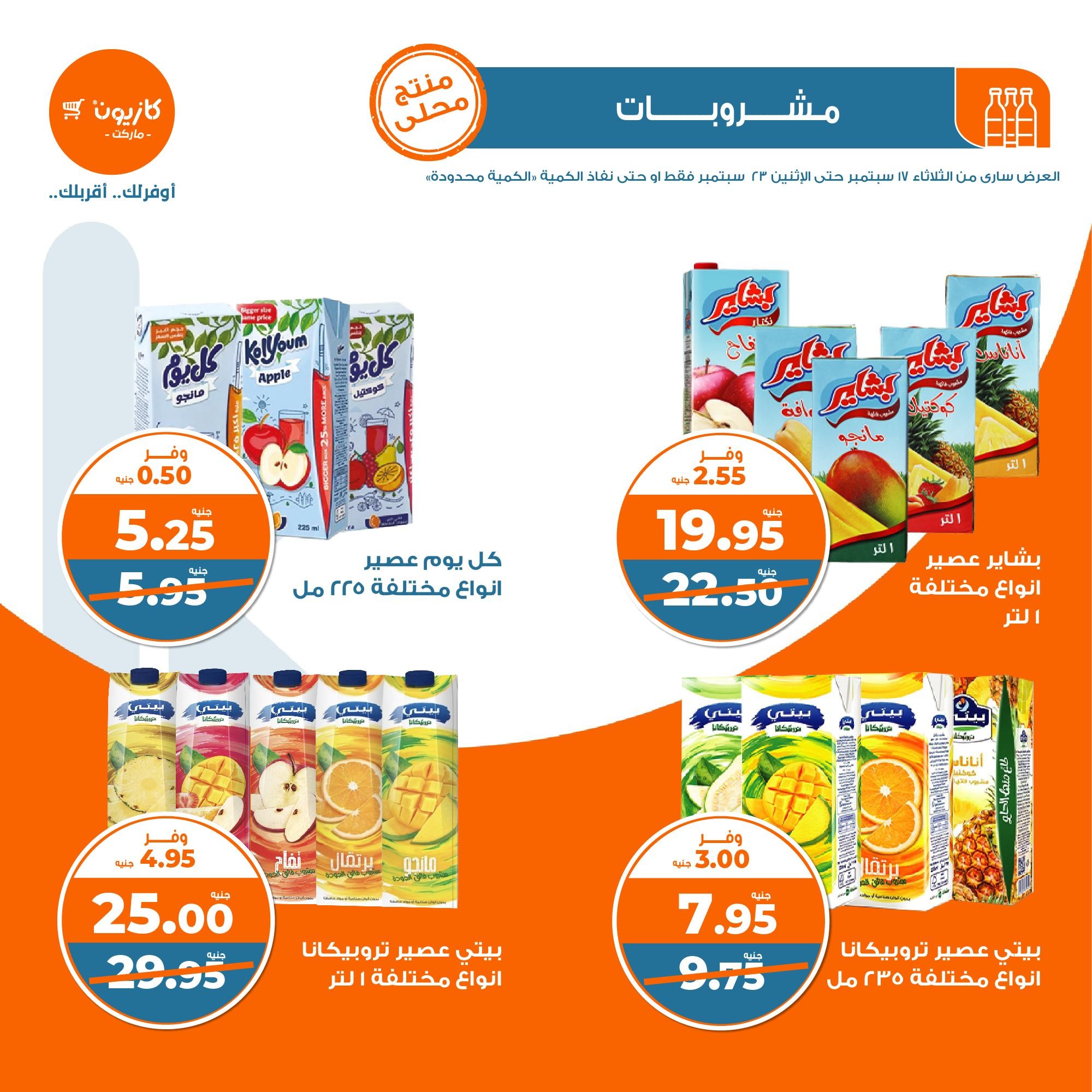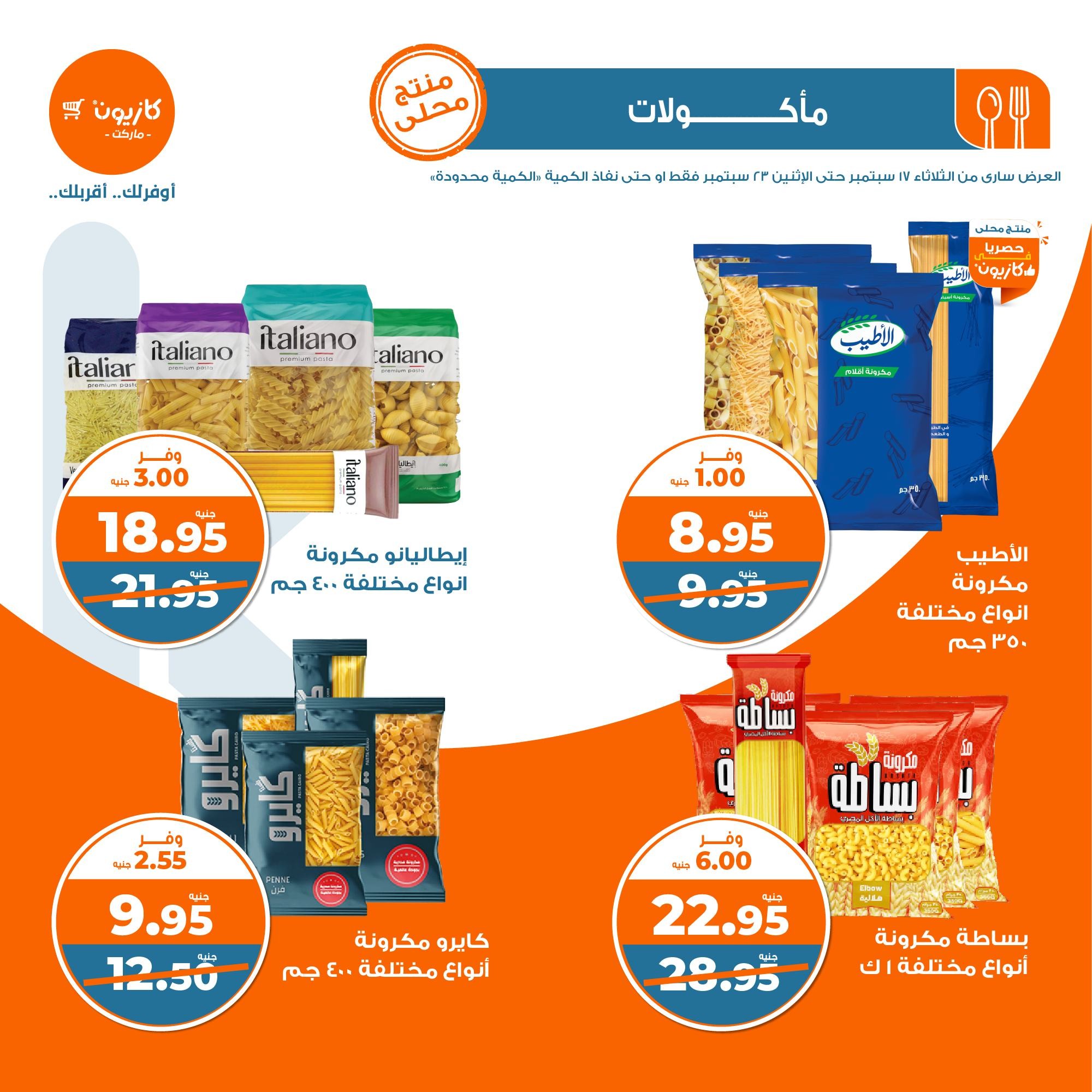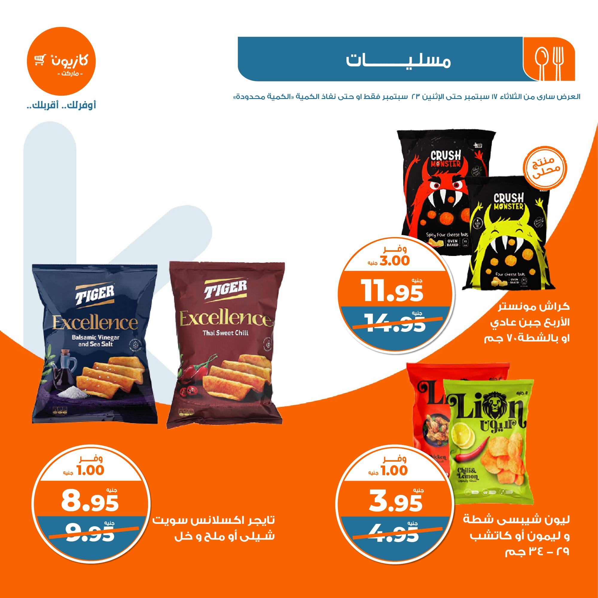 في الأوفر بيعرفك على عرووض كازيون ليوم الثلاثاء ابتداء من 17 سبتمبر حتى 23 سبتمبر