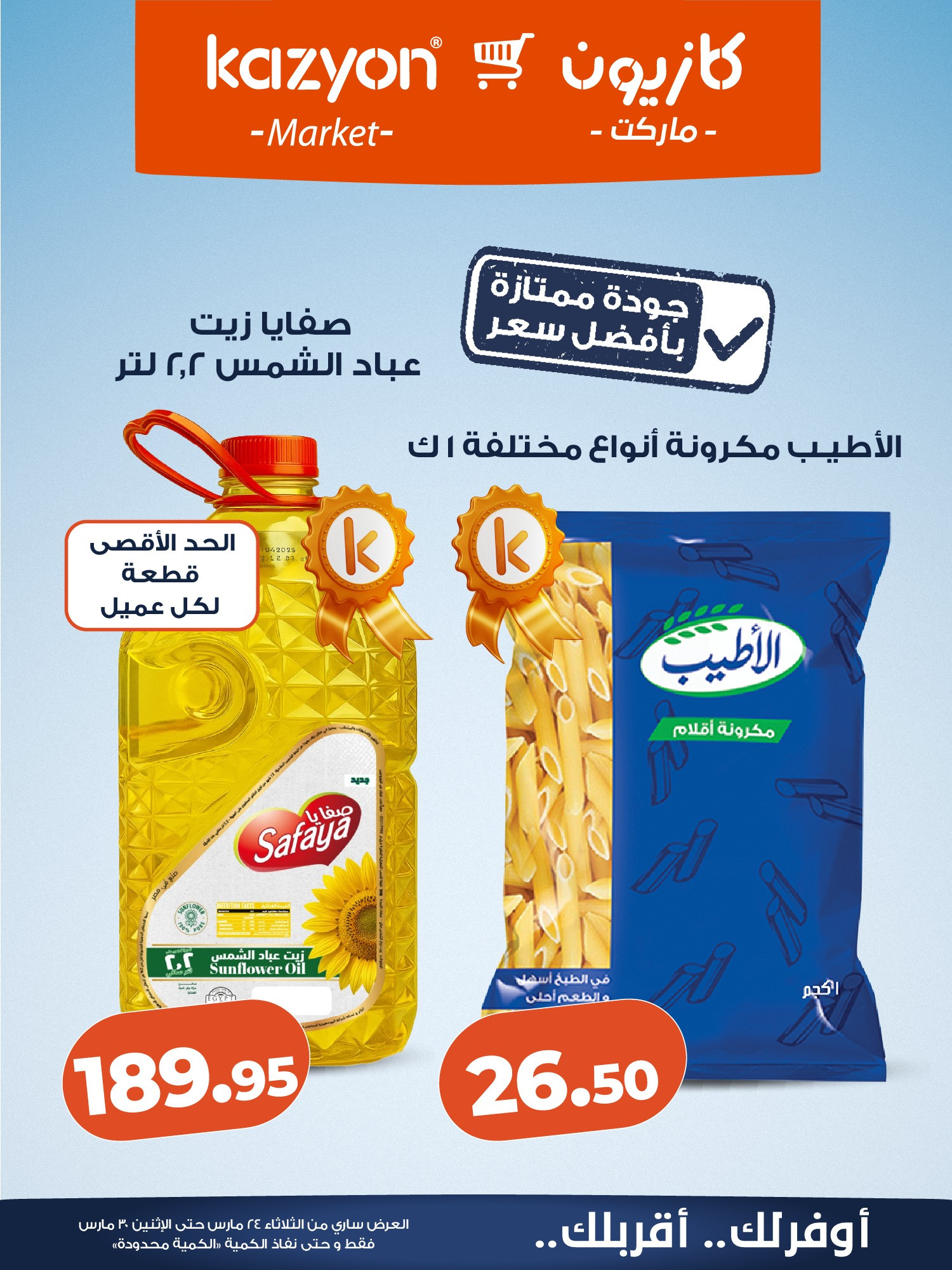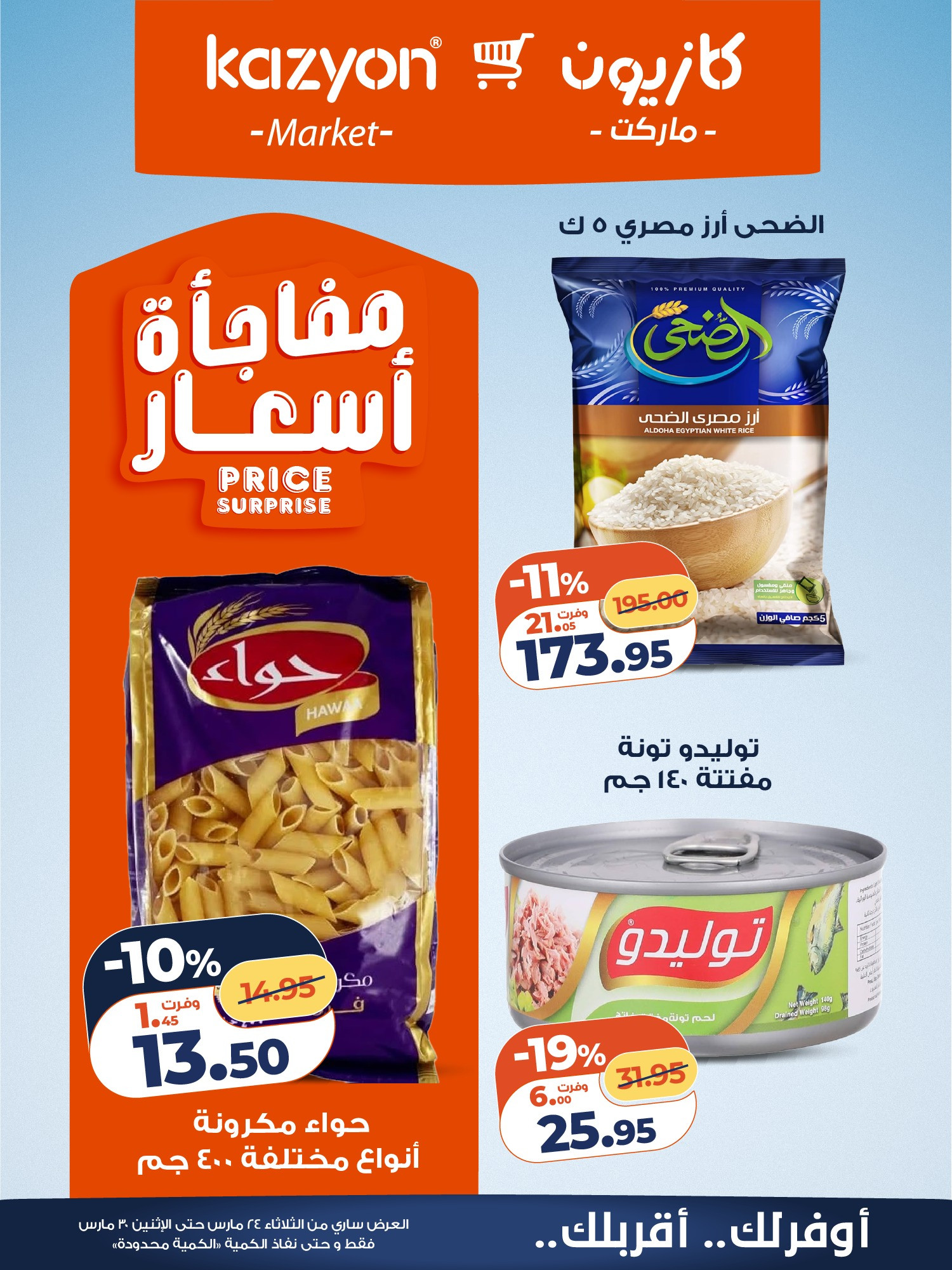 في الاوفر بيعرفك على عروض التلات من كازيون ماركت الجديدة ابتداء من 24 مارس حتى 30 مارس