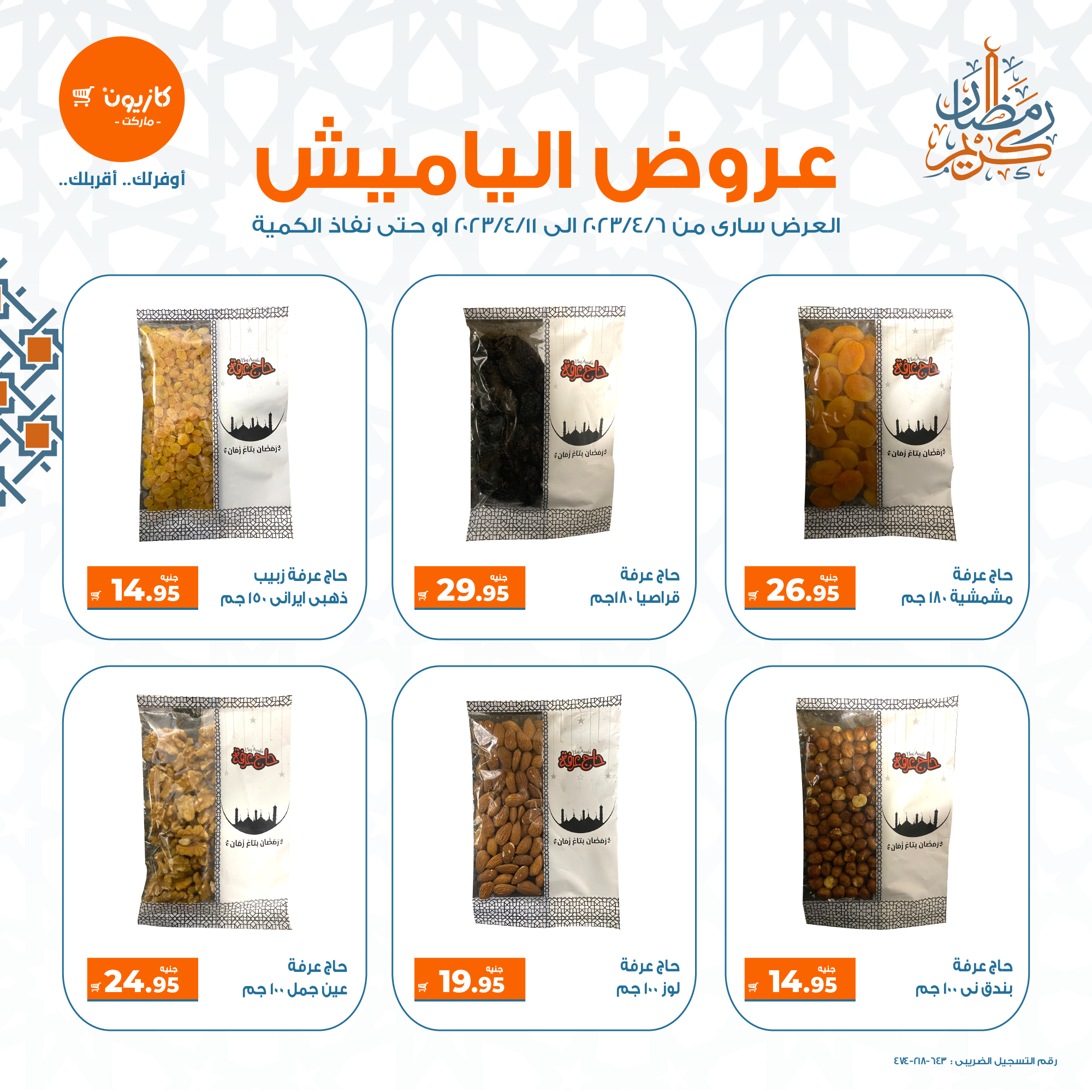 في الأوفر بيعرفك على عروض كازيون ياميش رمضان ابتداء من 6 أبريل حتى 11 أبريل