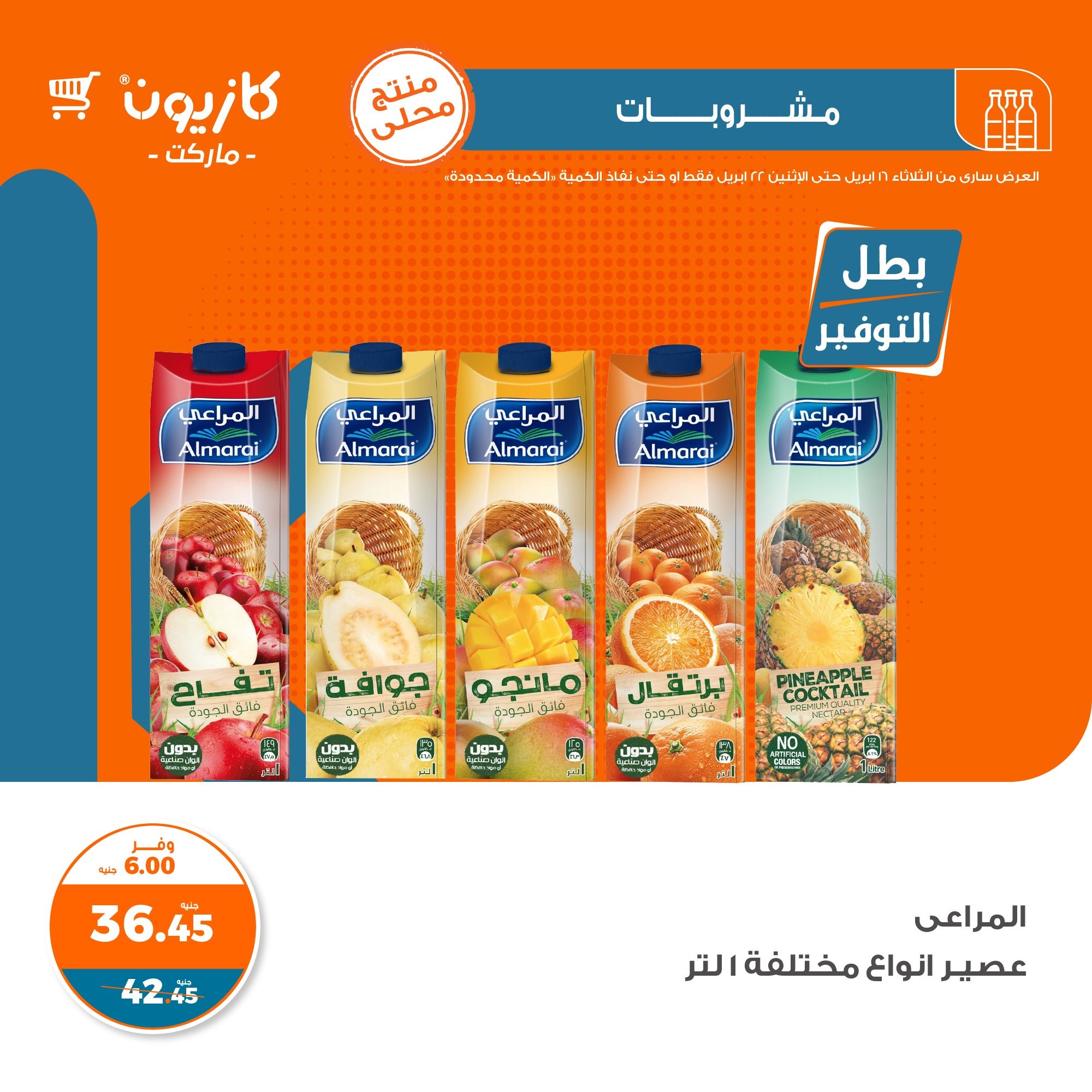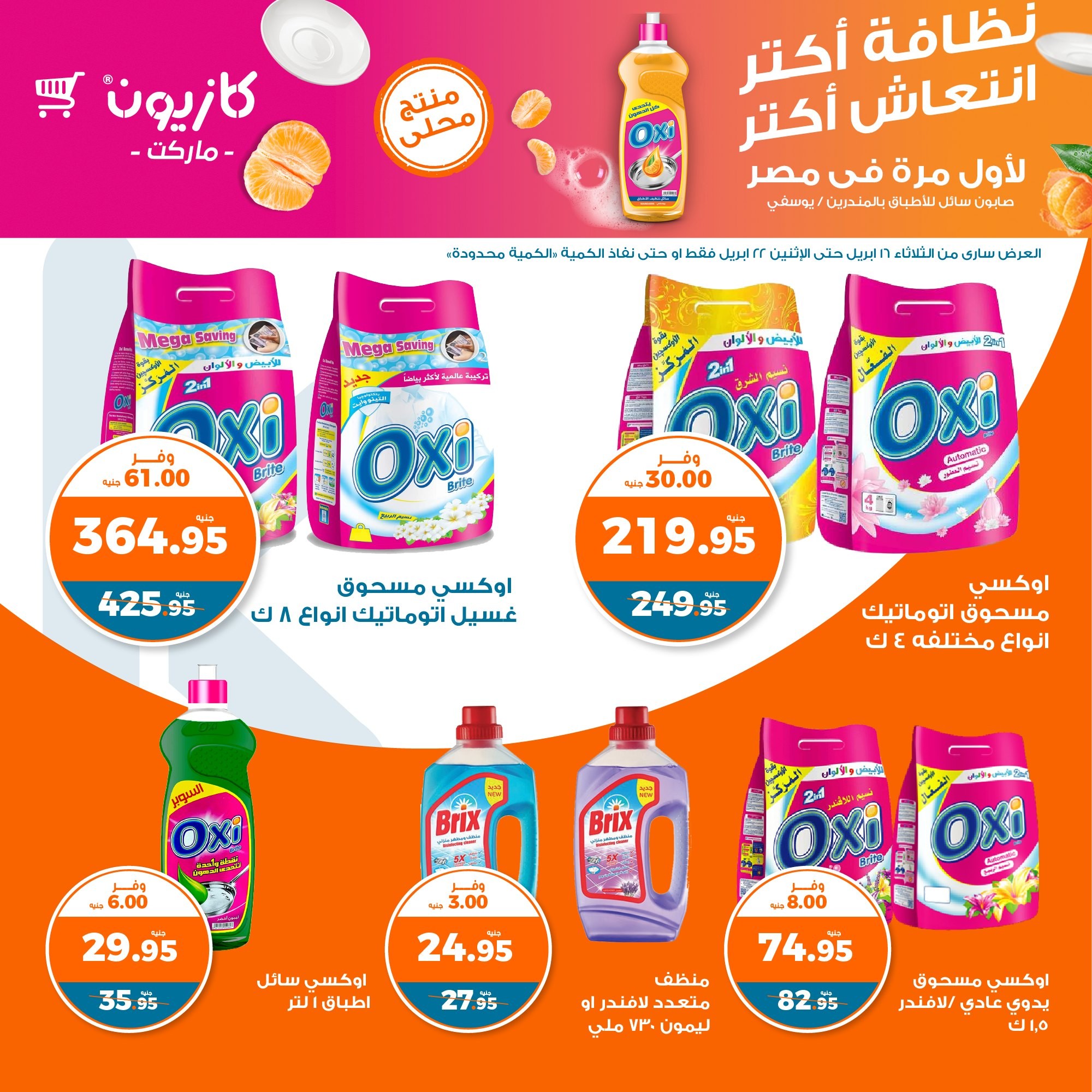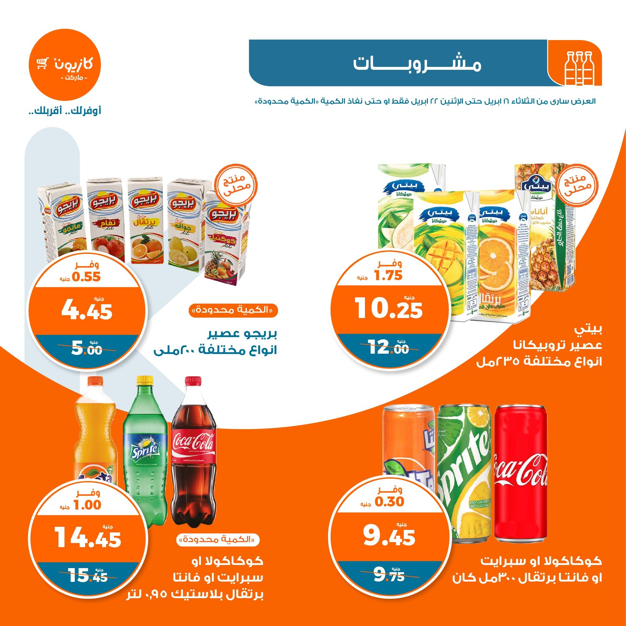 في الأوفر بيعرفك على عروض كازيون ماركت التلات الجديدة ابتداء من 16 أبريل حتى 22 أبريل