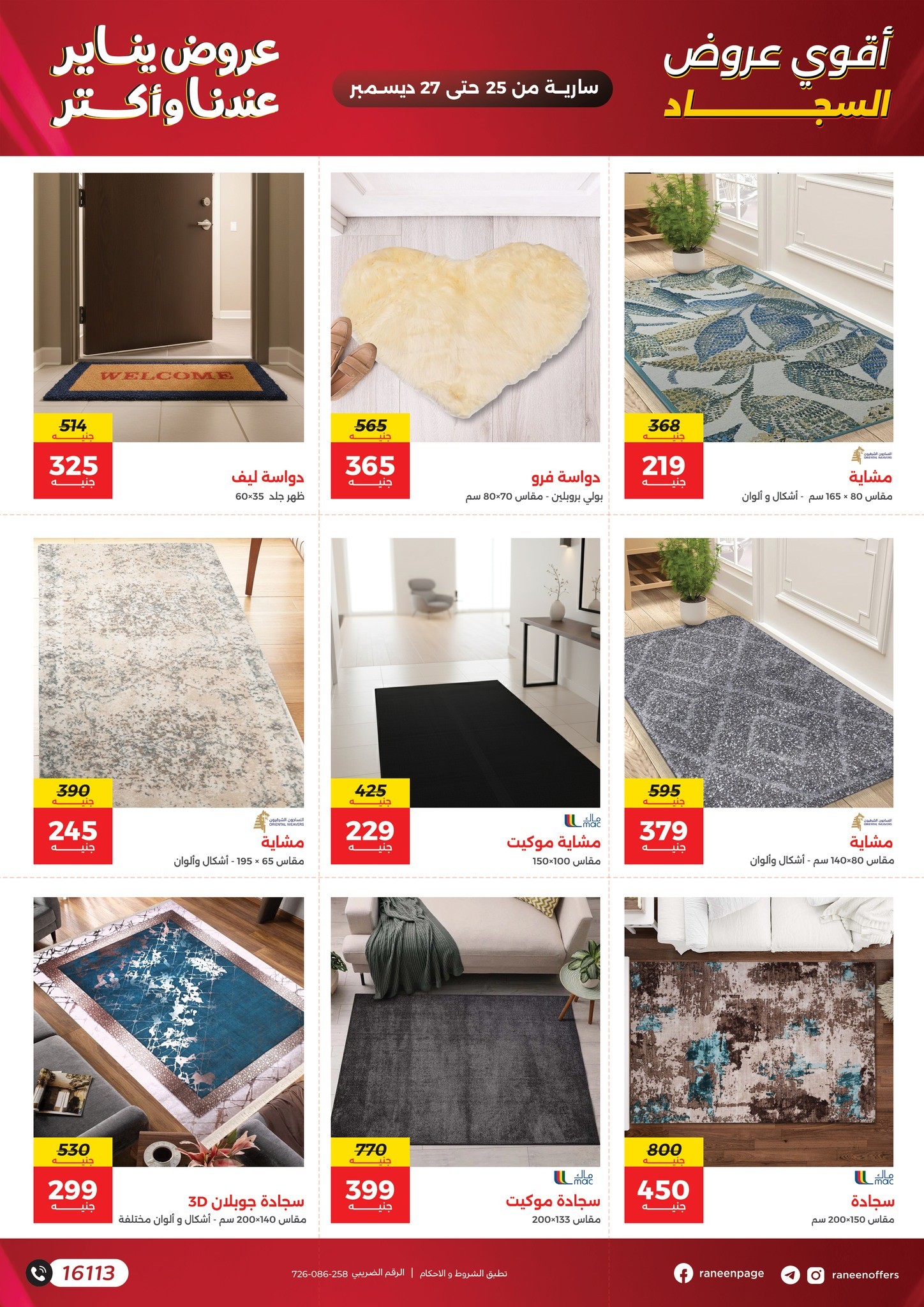 في الأوفر بيعرفك على عروض سنتر رنين الجديدة ابتداء من 25 ديسمبر حتى 27 ديسمبر